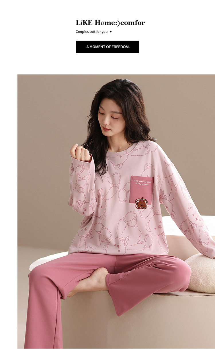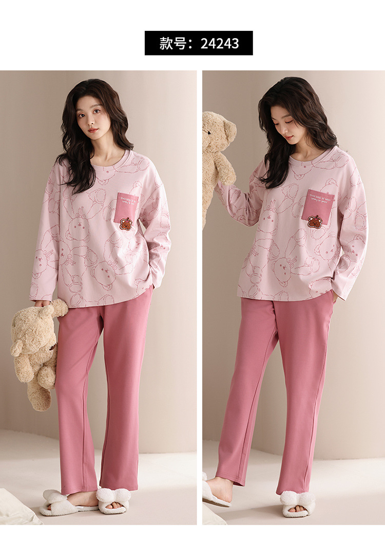 봄 2025 새로운 6535 양면 소녀 크루 넥 머리띠 가슴 패드 긴 소매 파자마 여성 홈 의류 세트스토어 가기
