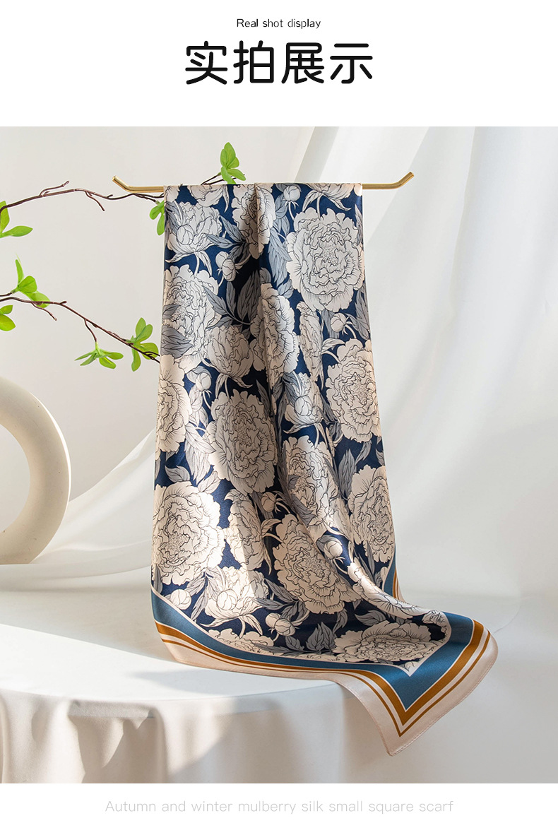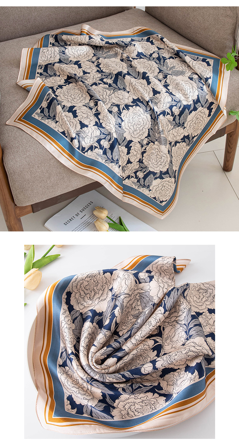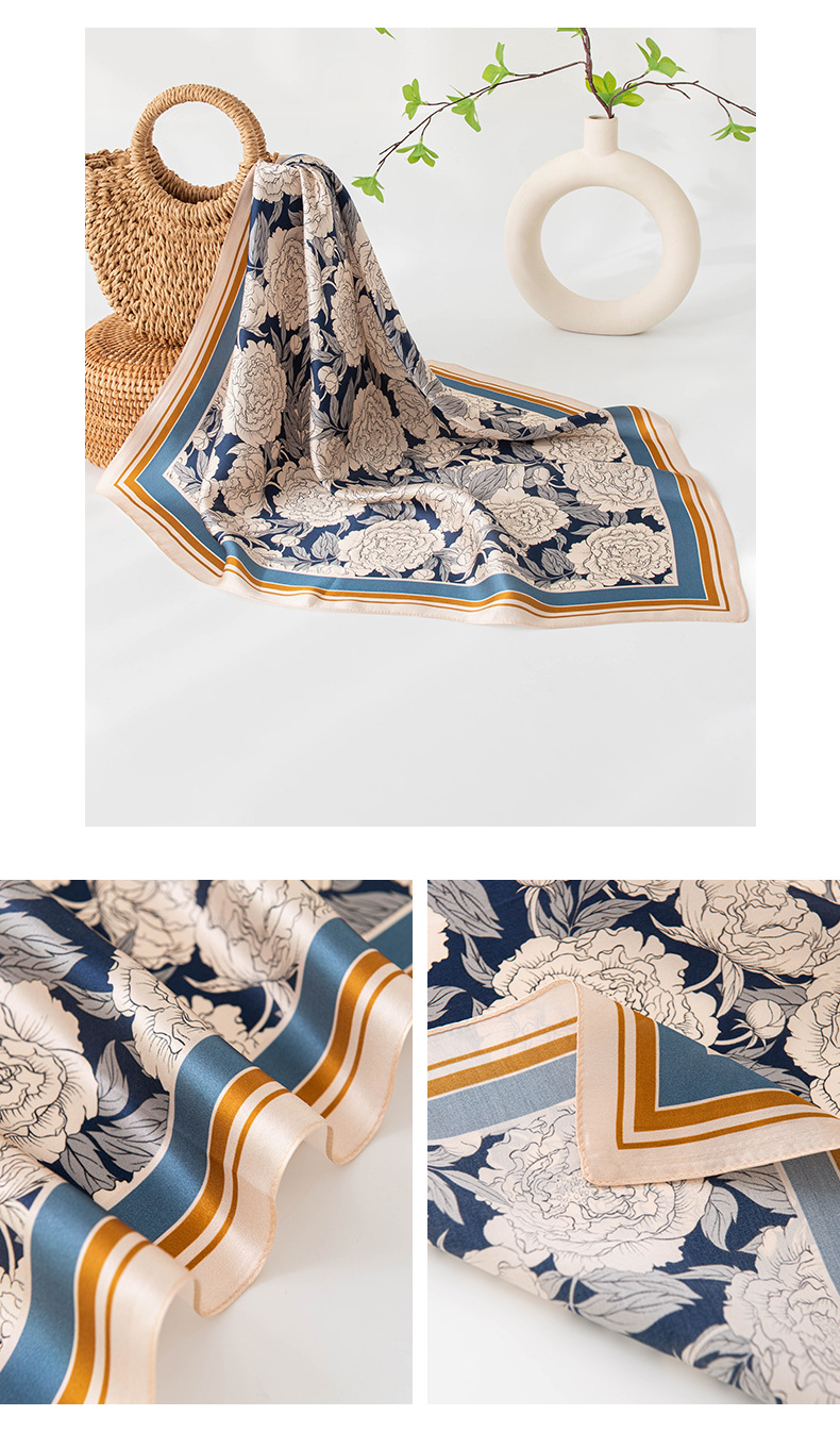 간단하고 우아한 식물 꽃 꽃 인쇄 실크 스카프 고급 유행 올 매치 여성 장식 스카프