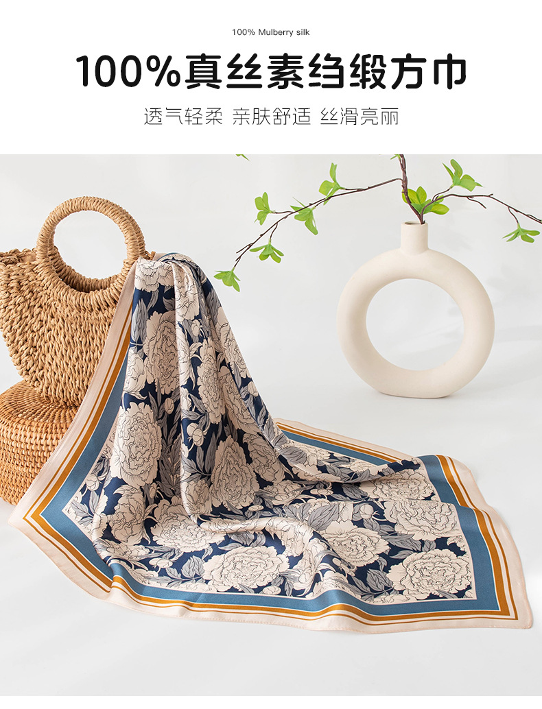 간단하고 우아한 식물 꽃 꽃 인쇄 실크 스카프 고급 유행 올 매치 여성 장식 스카프스토어 가기