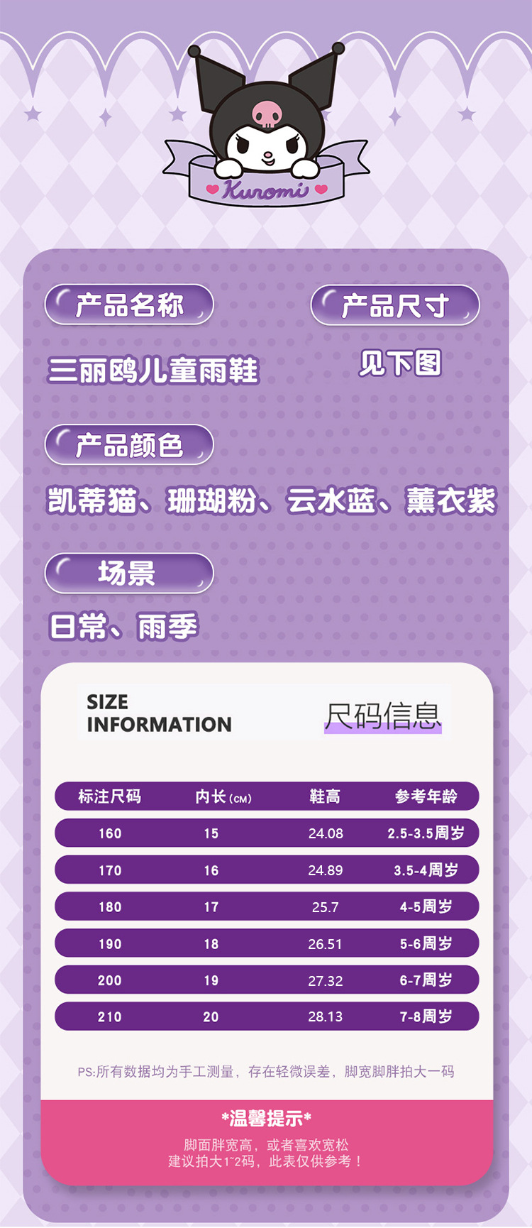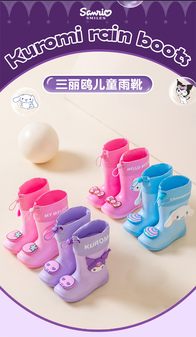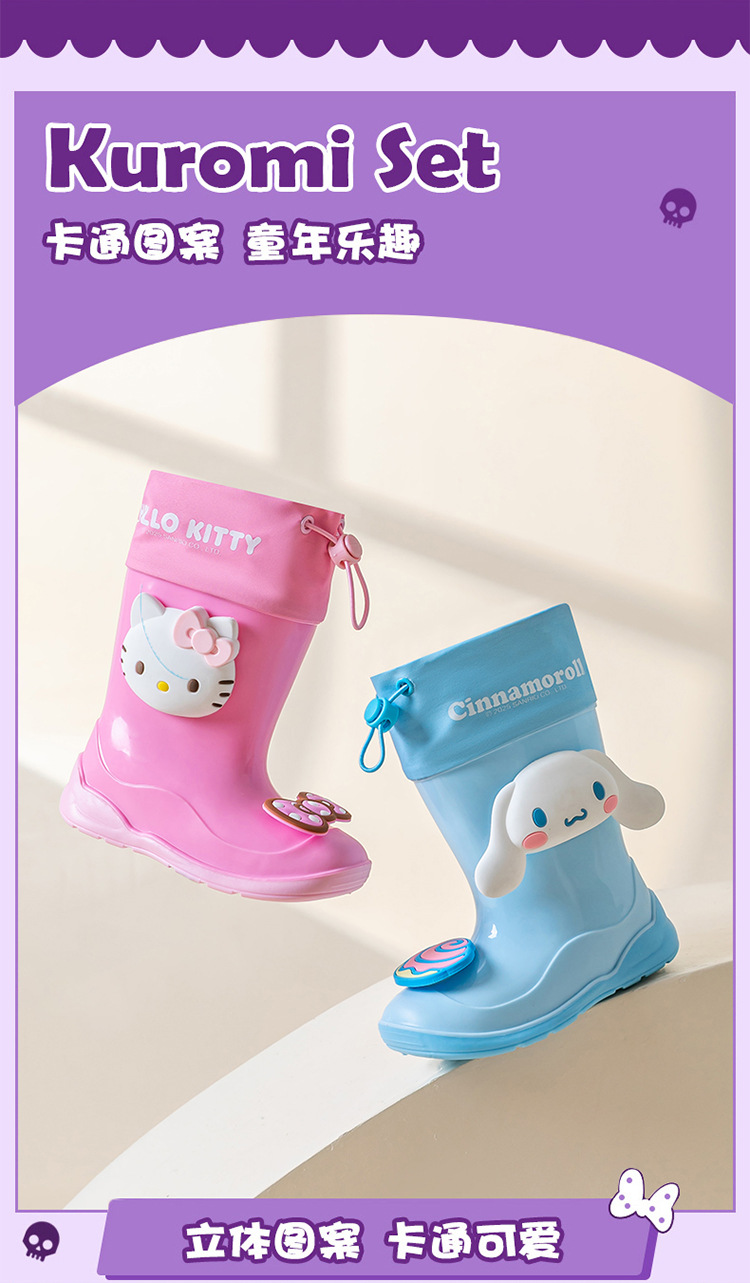 새로운 산리오 어린이 장화 여아 미끄럼 방지 초등학교 어린이 야외 물장화 여아 방수 장화