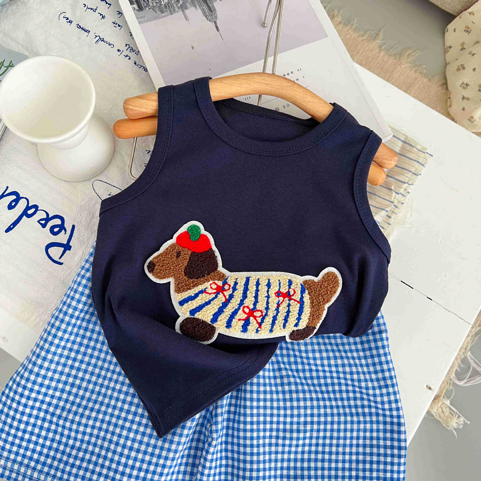 2025 새로운 여름 어린이 조끼 세트 소년 소녀 패션 캐주얼 한국 느슨한 만화 조끼 반바지