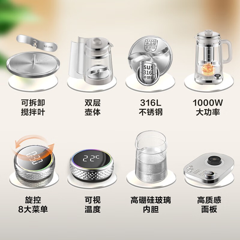 Suppor SW-15Y09 교반하는 건강 냄비 1.5L 더블 냄비 바디 차 보일러 316L 스테인레스 스틸 방수 스튜 냄비스토어 가기