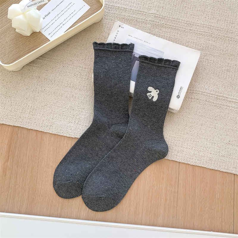 봄 귀여운 자수 양말 여성 인스 타 그램 스타일 코튼 미드 양말 일본식 포인트 원사 달콤한 레이스 더미 양말스토어 가기
