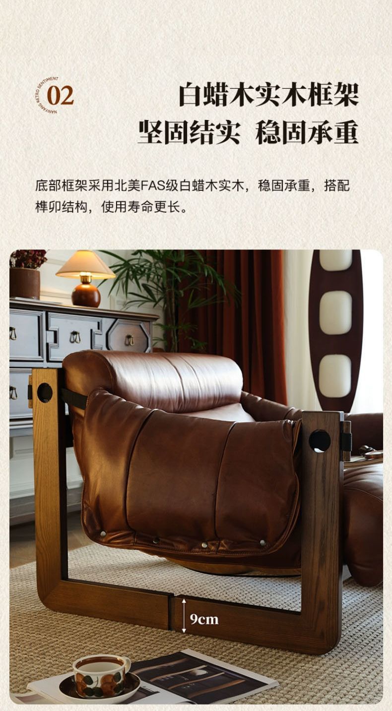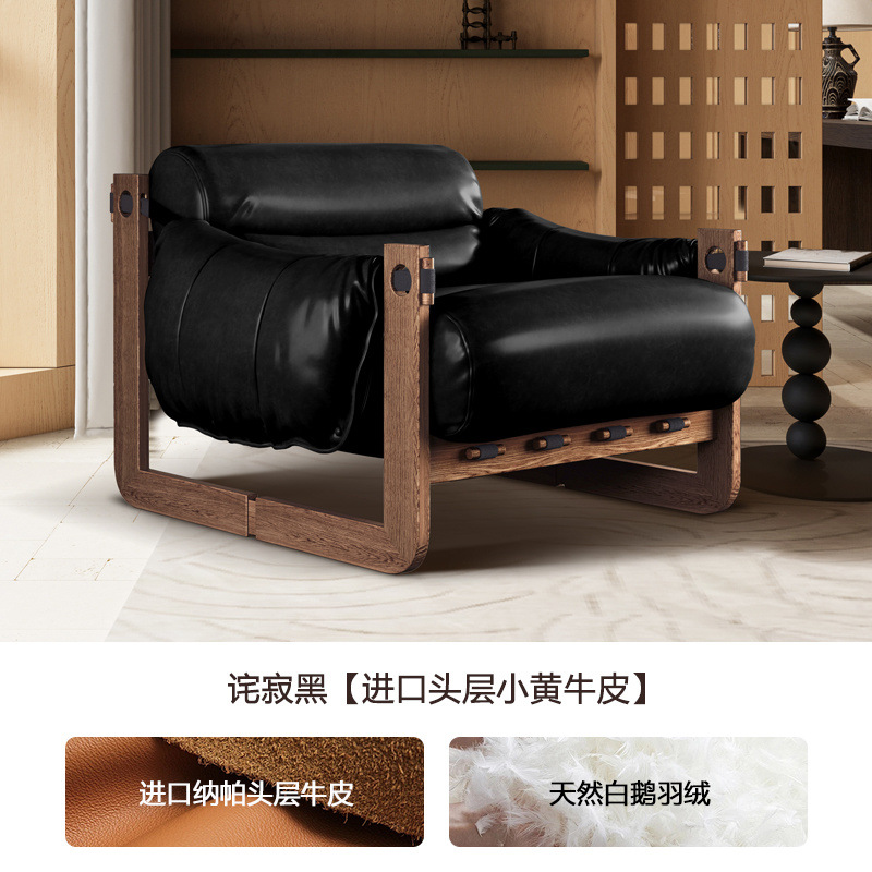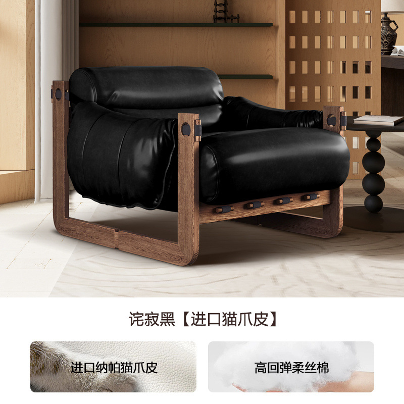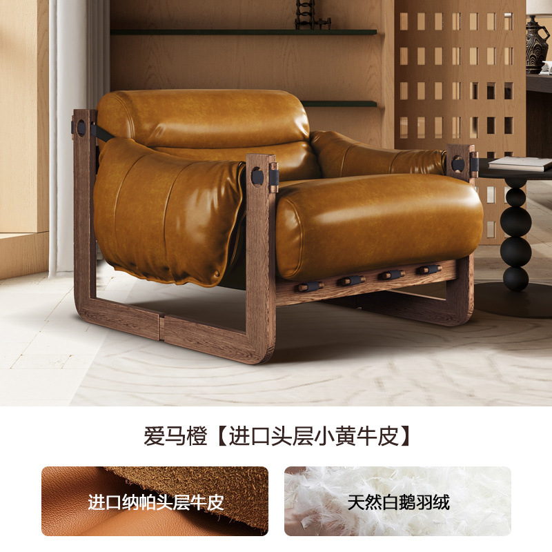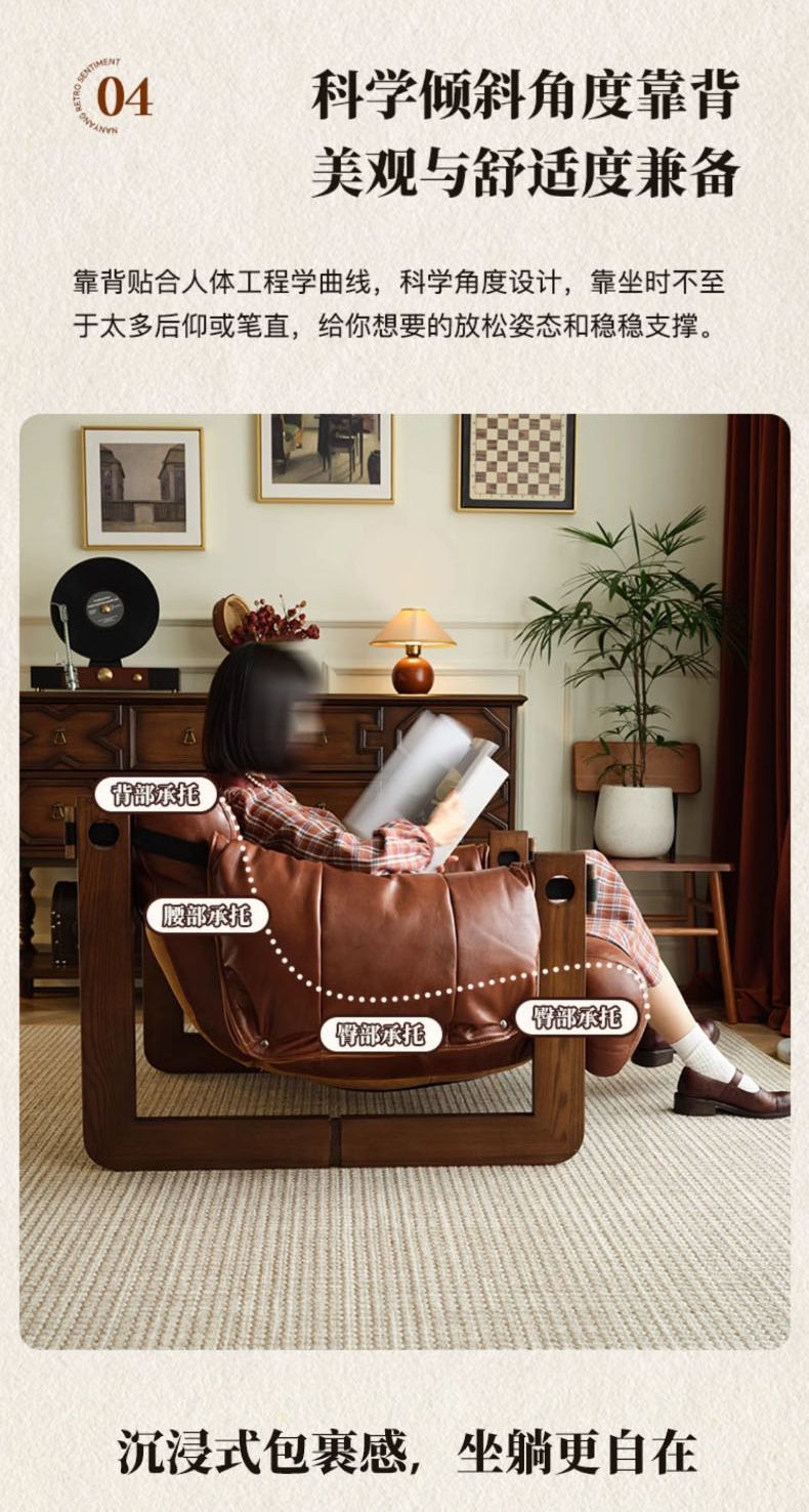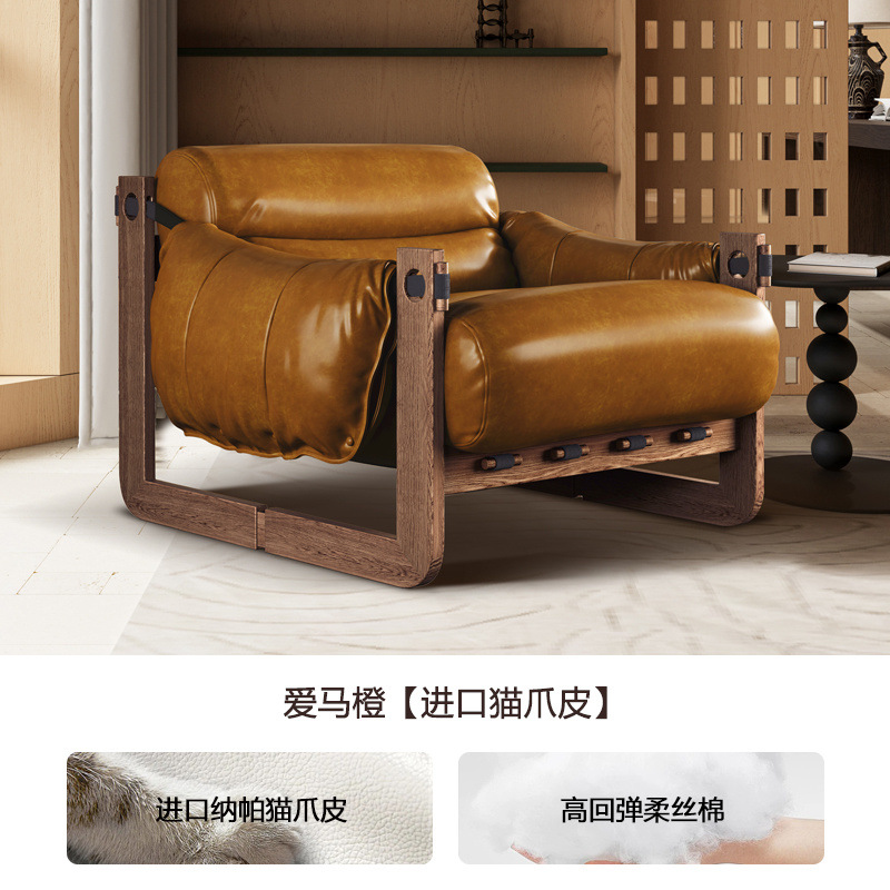 중간 고대 스타일 캐주얼 홈스테이 거실 캐주얼 싱글 가죽 Recliner 라이트 럭셔리 침실 저지 싱글 소파 가죽 의자