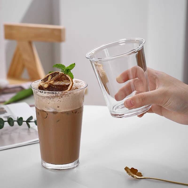 롤업 커피컵과 같은 카카오 폭발 방지 투명 유리 라운드 입 컵 밀크 티컵 블루 병스토어 가기