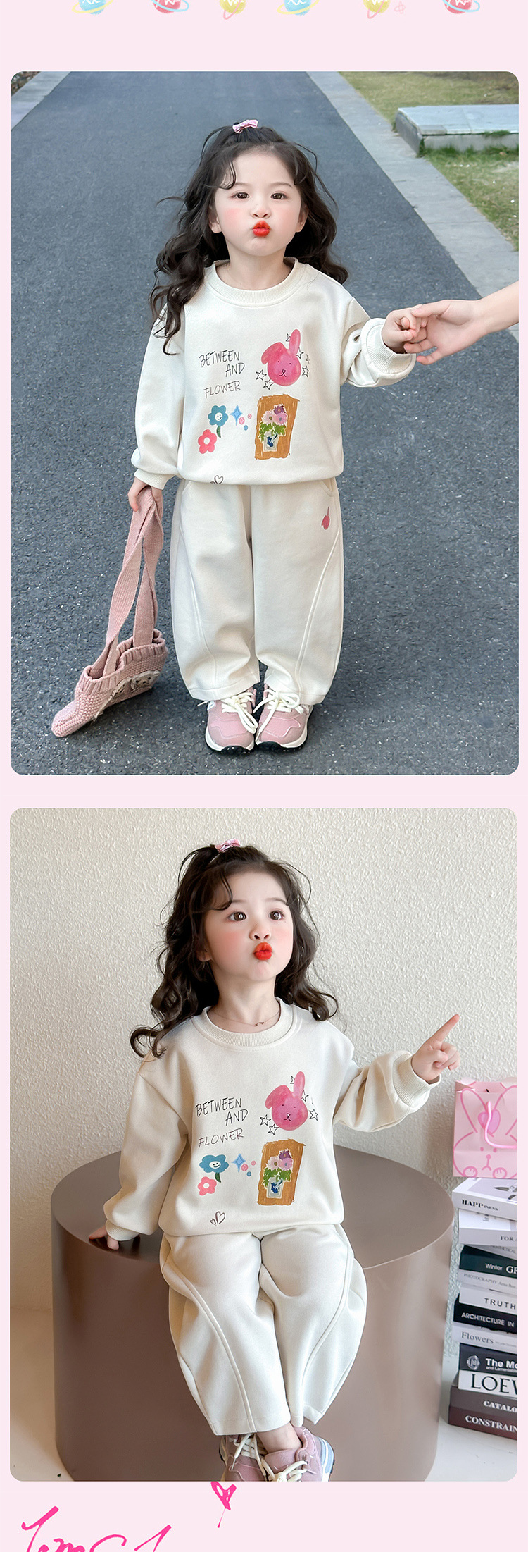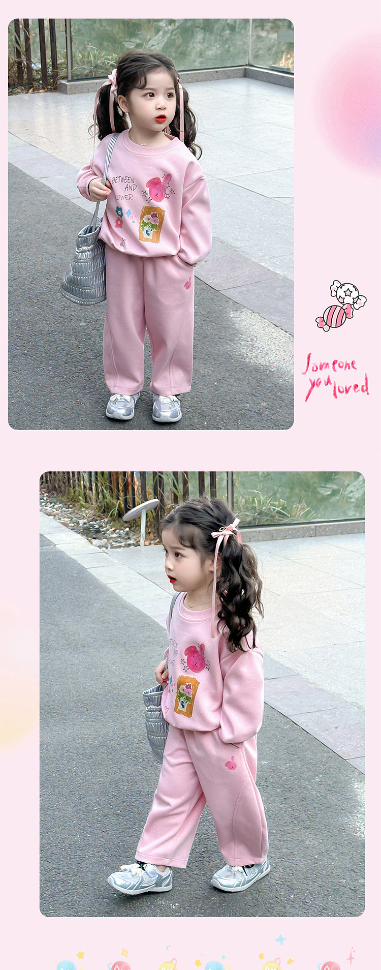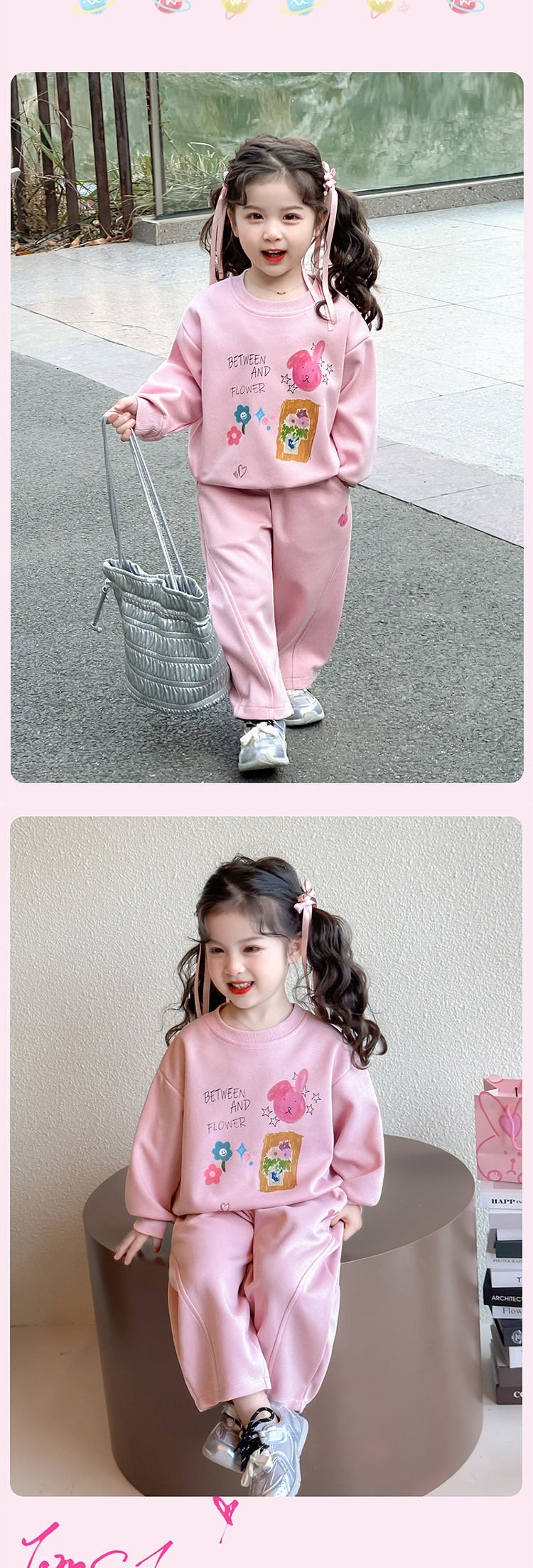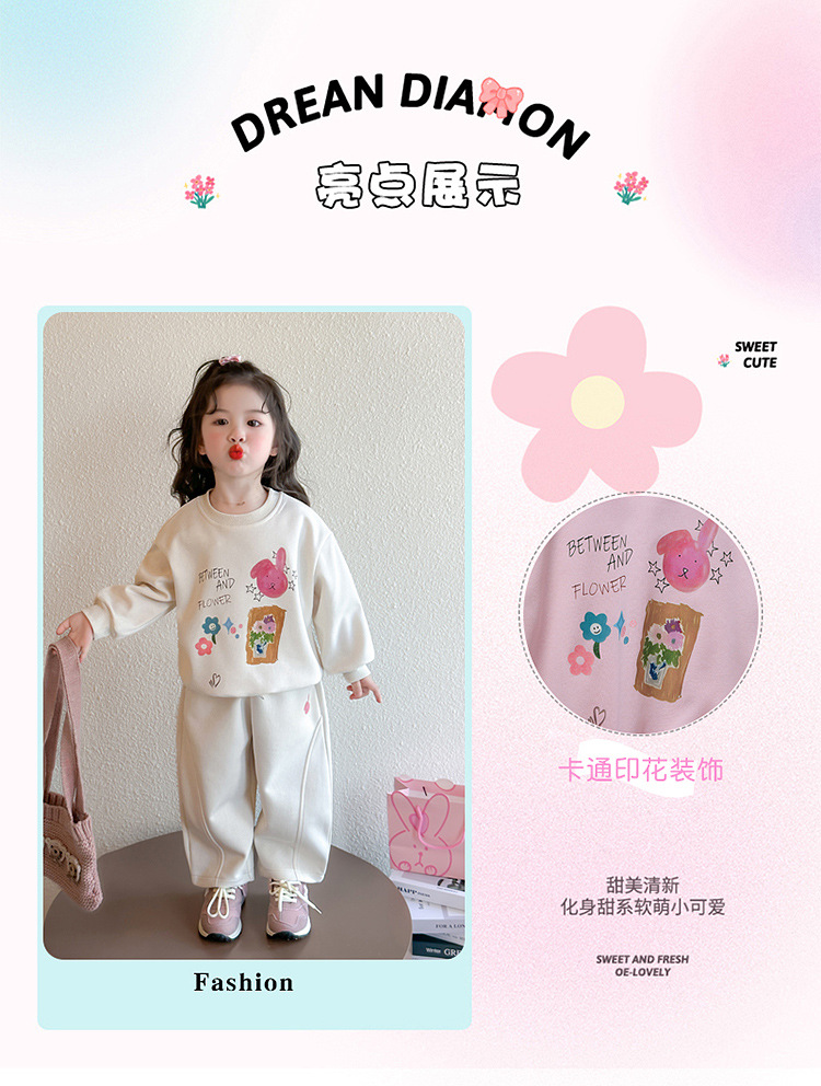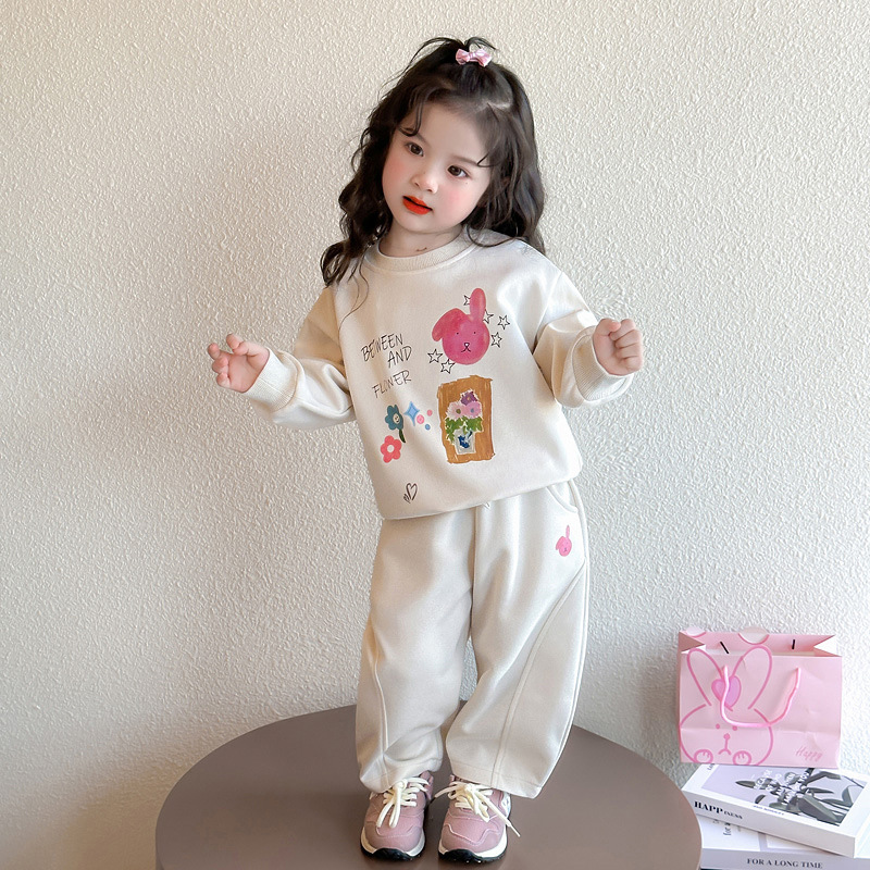 소녀 달콤한 만화 스웨트 셔츠 세트 봄과 가을 2025 새로운 패션 어린 소녀 스포츠 캐주얼 투피스 세트스토어 가기
