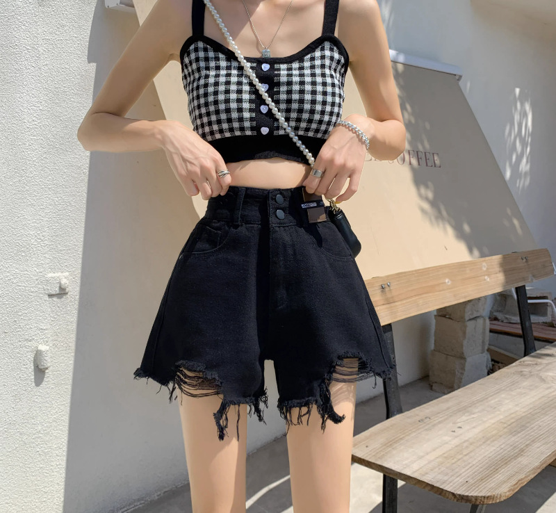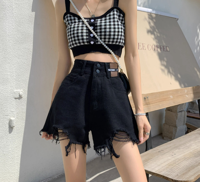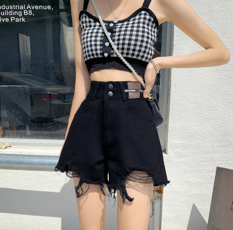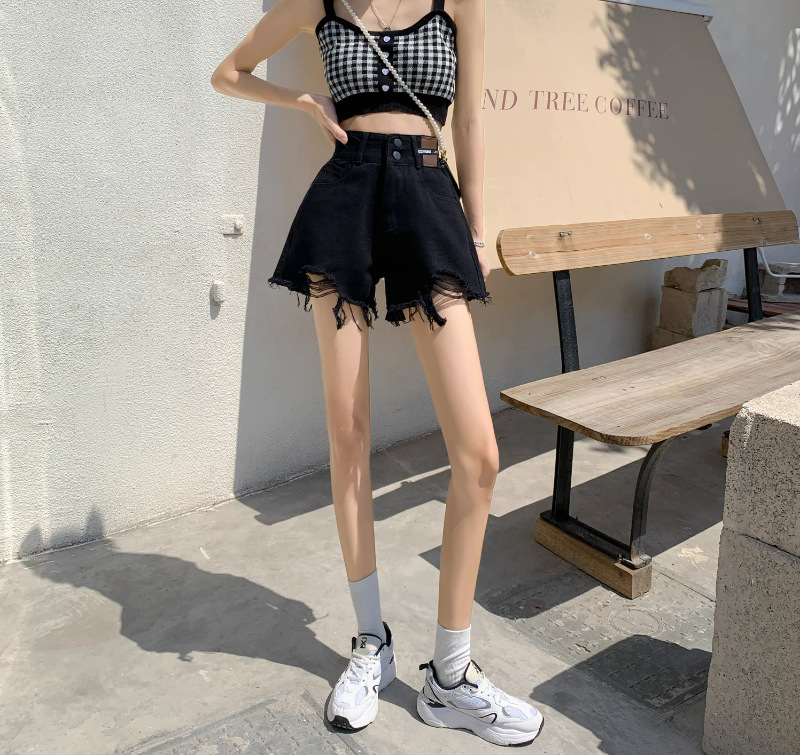 블랙홀 데님 반바지 여자 여름 2025 새로운 Ins 유행 플러스 사이즈 핫 바지 높은 허리 A- Shown 넓은 다리 바지스토어 가기