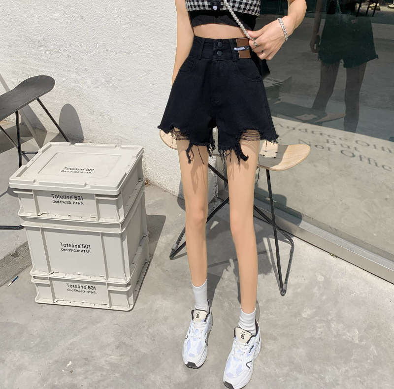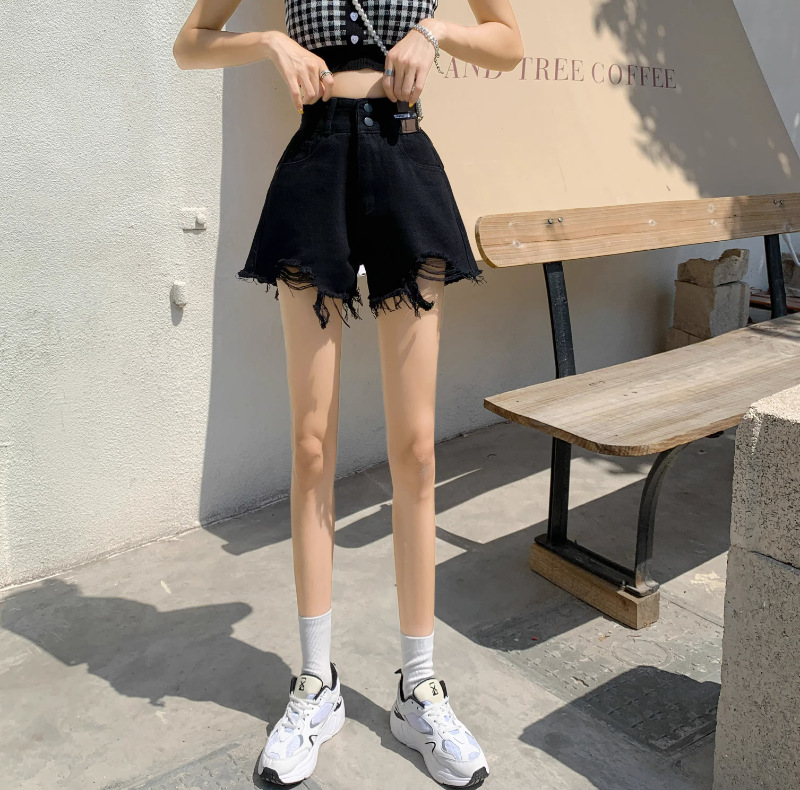 블랙홀 데님 반바지 여자 여름 2025 새로운 Ins 유행 플러스 사이즈 핫 바지 높은 허리 A- Shown 넓은 다리 바지
