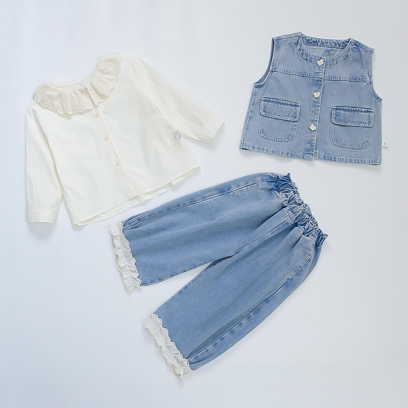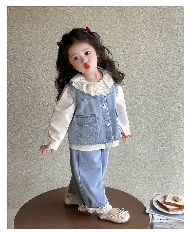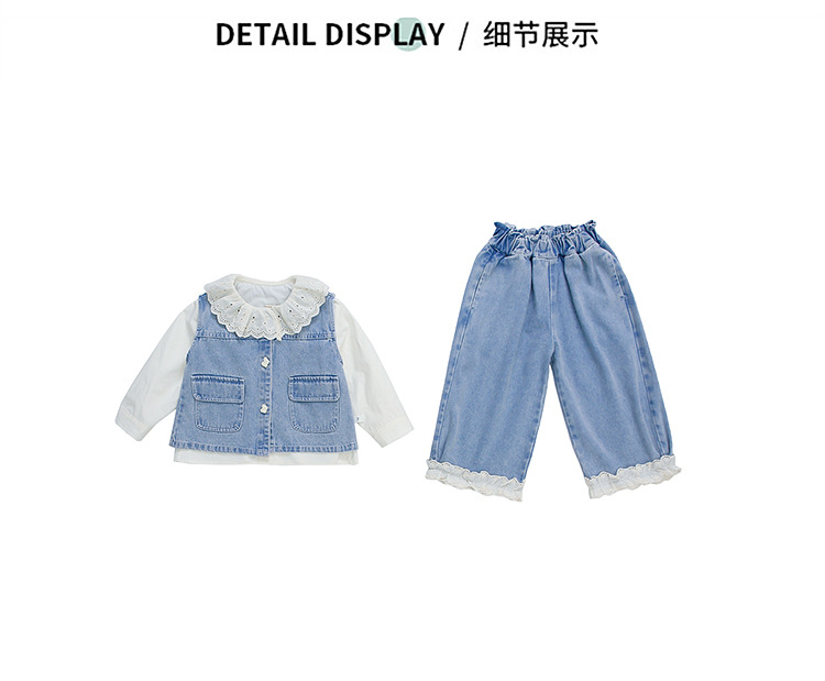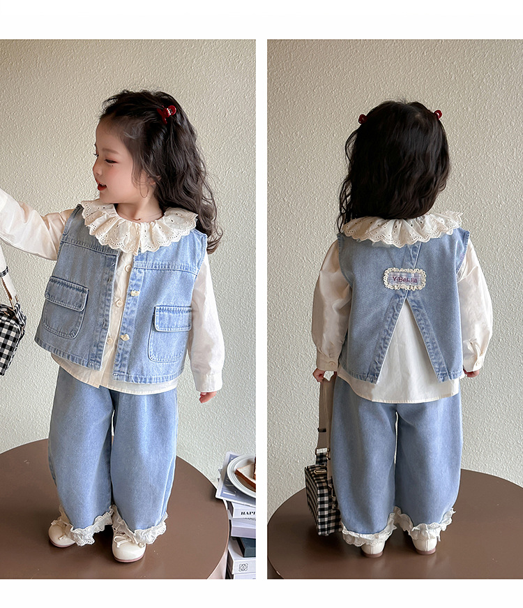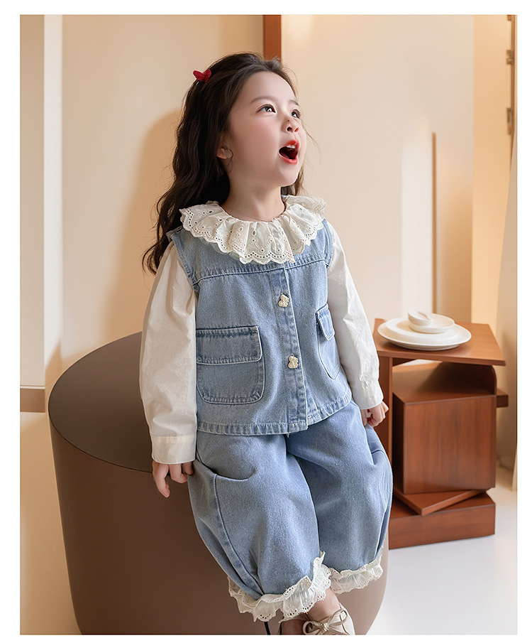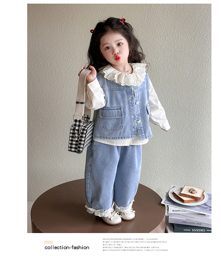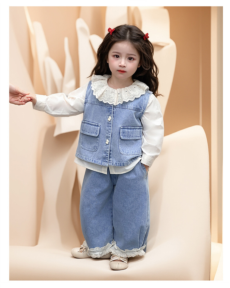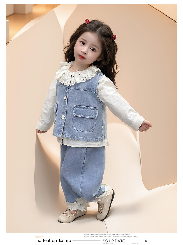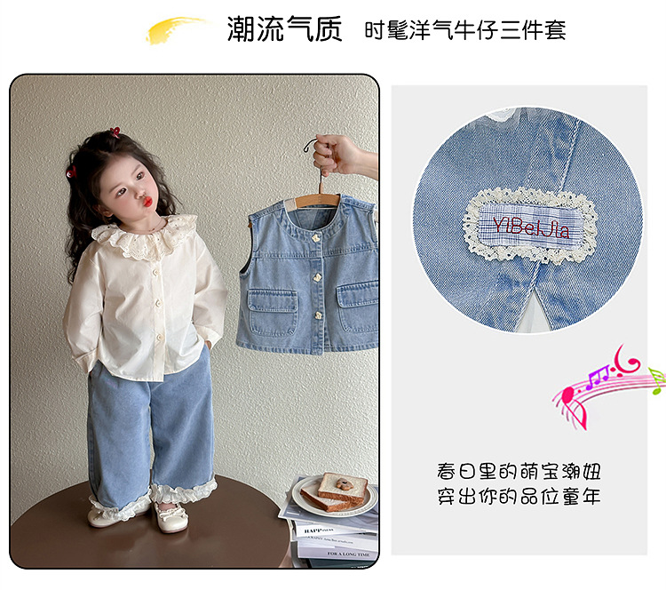 소녀 레이스 데님 3 조각 세트 봄과 가을 2025 새로운 패션 소녀 세련된 세트 아동복스토어 가기