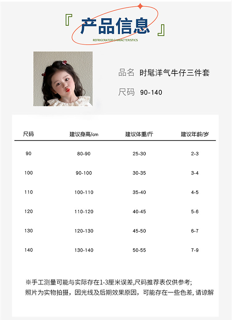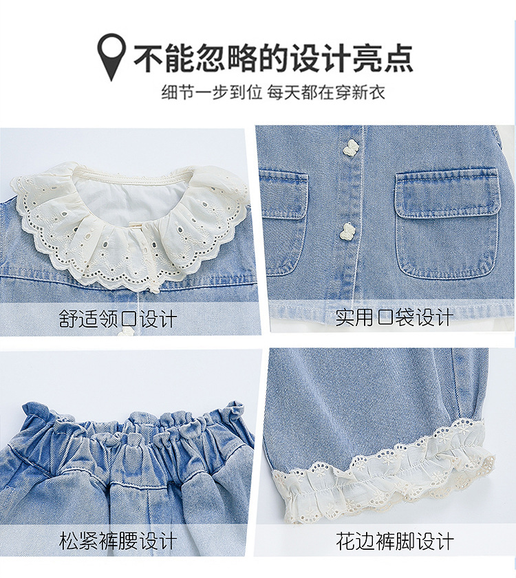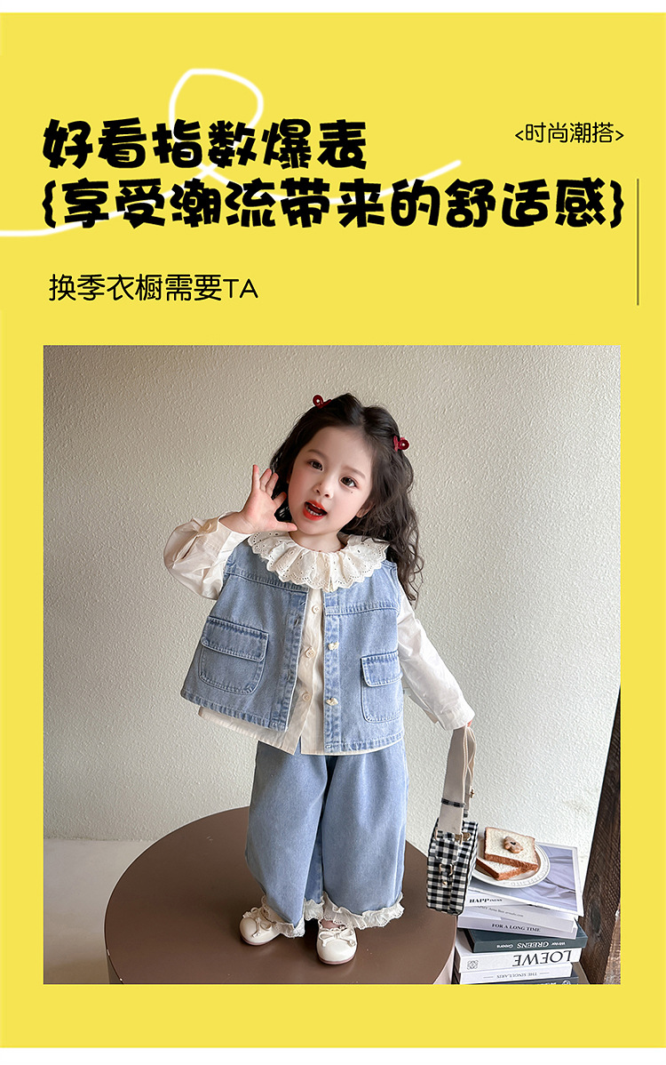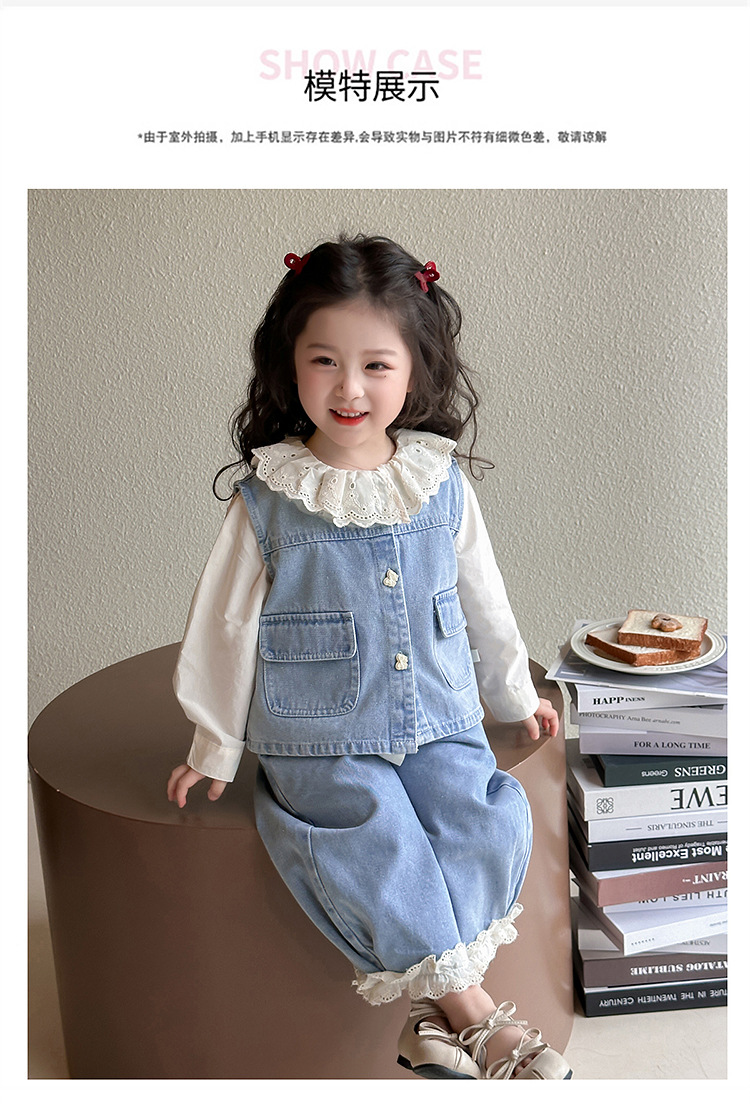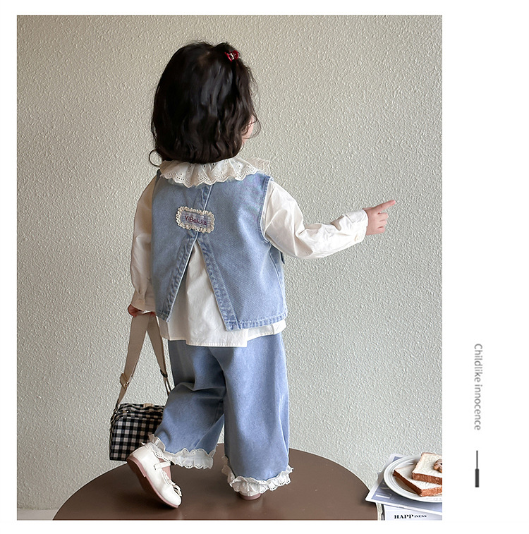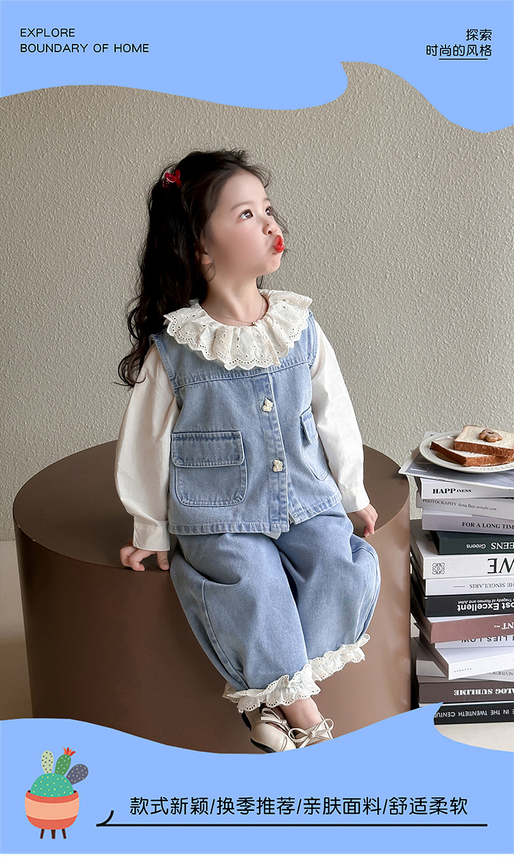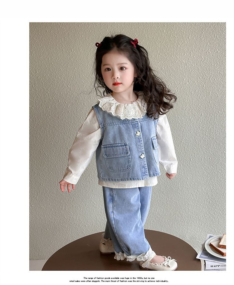 소녀 레이스 데님 3 조각 세트 봄과 가을 2025 새로운 패션 소녀 세련된 세트 아동복스토어 가기