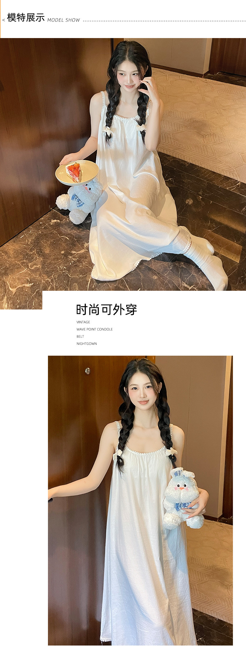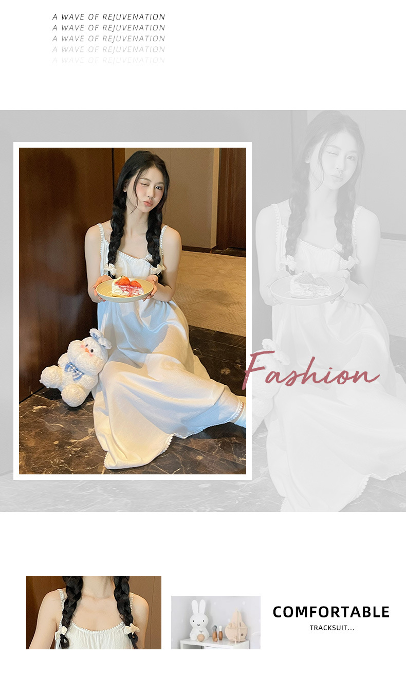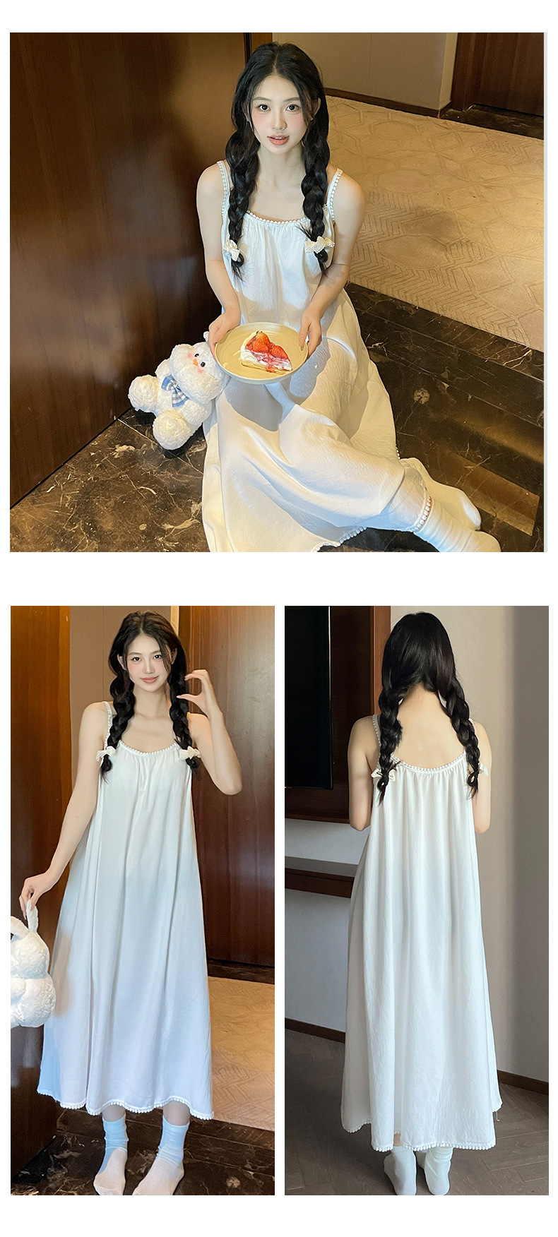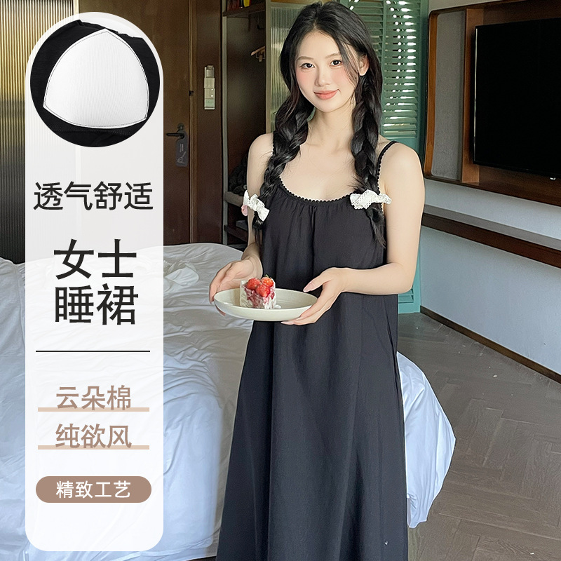 여자 여름 얇은 구름 코튼 홈 옷 가슴 패드가 달린 플러스 사이즈 외부와 함께 중간 길이의 섹시한 슬링 스커트