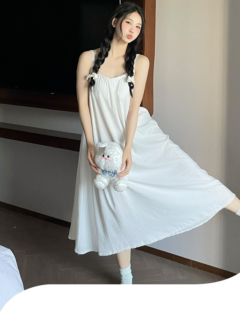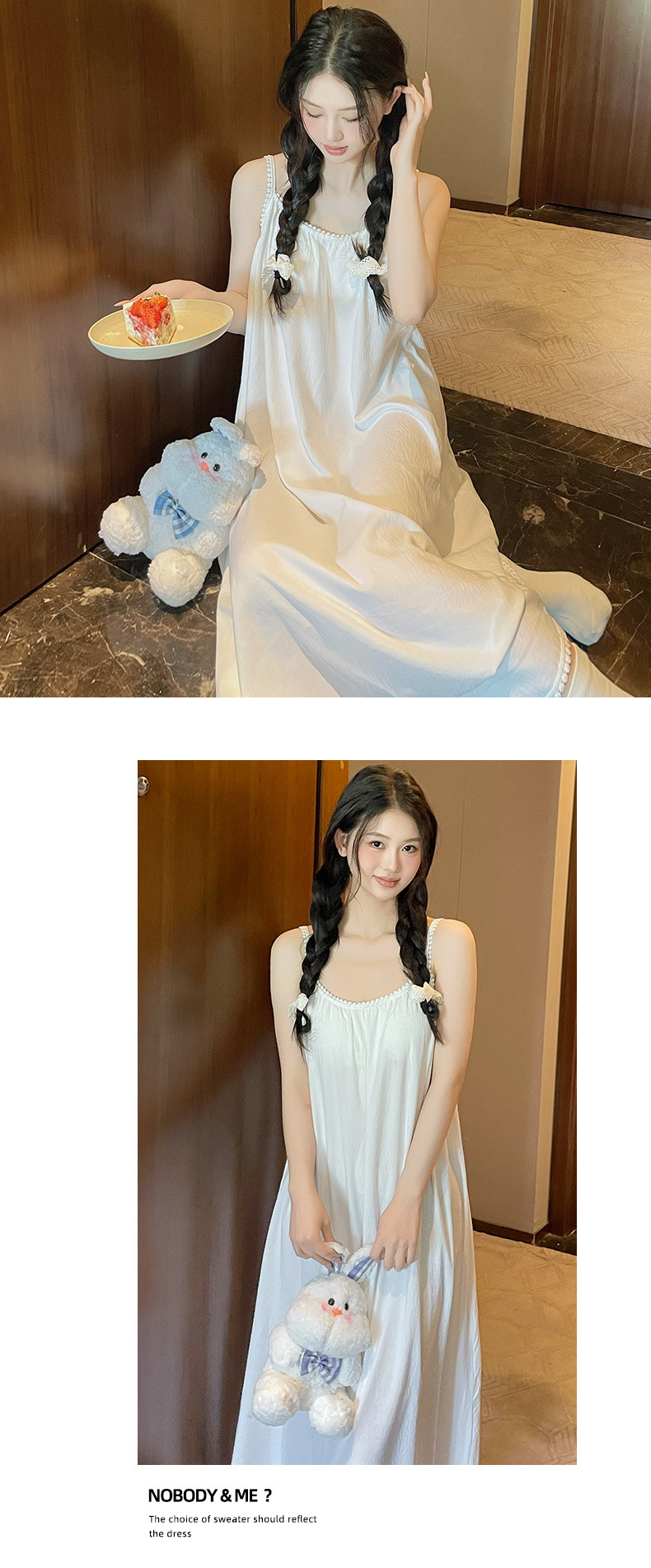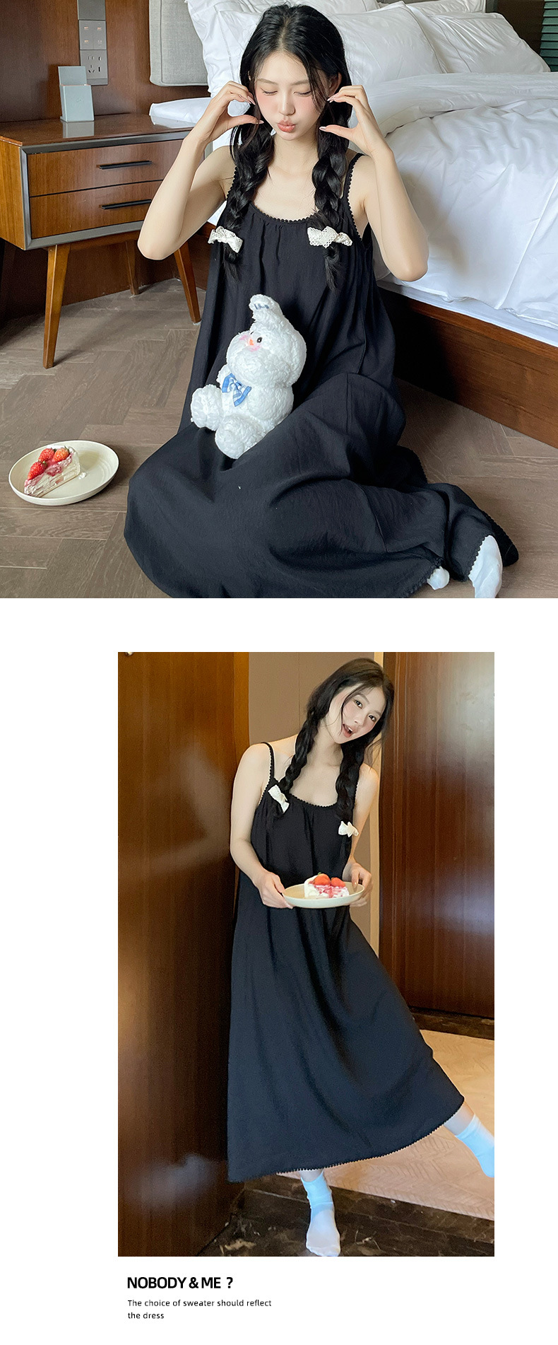 여자 여름 얇은 구름 코튼 홈 옷 가슴 패드가 달린 플러스 사이즈 외부와 함께 중간 길이의 섹시한 슬링 스커트