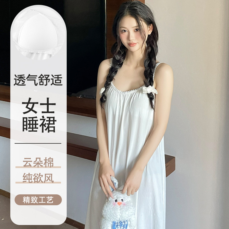 여자 여름 얇은 구름 코튼 홈 옷 가슴 패드가 달린 플러스 사이즈 외부와 함께 중간 길이의 섹시한 슬링 스커트스토어 가기