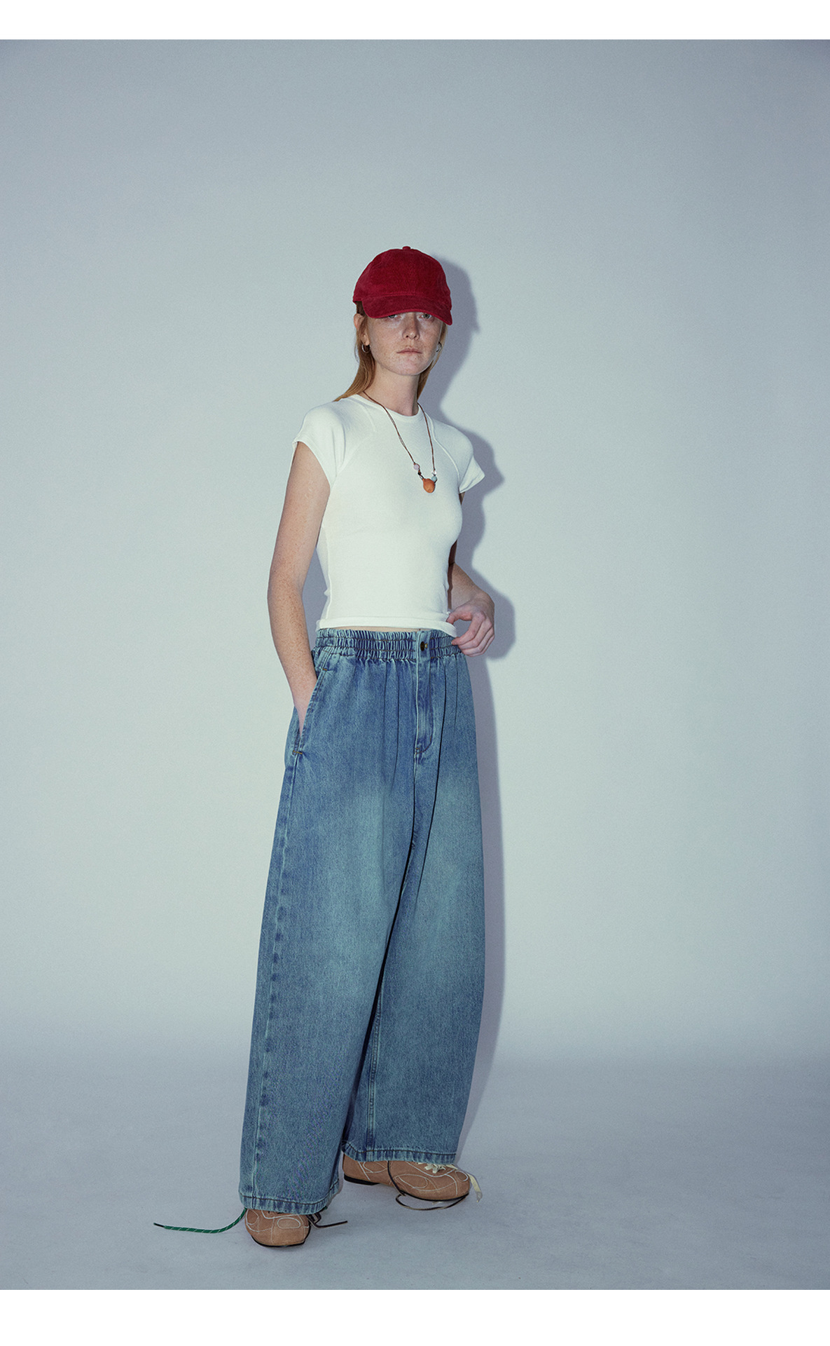 [언제] 새로운 탄성 허리 바나나 청바지 V7656스토어 가기