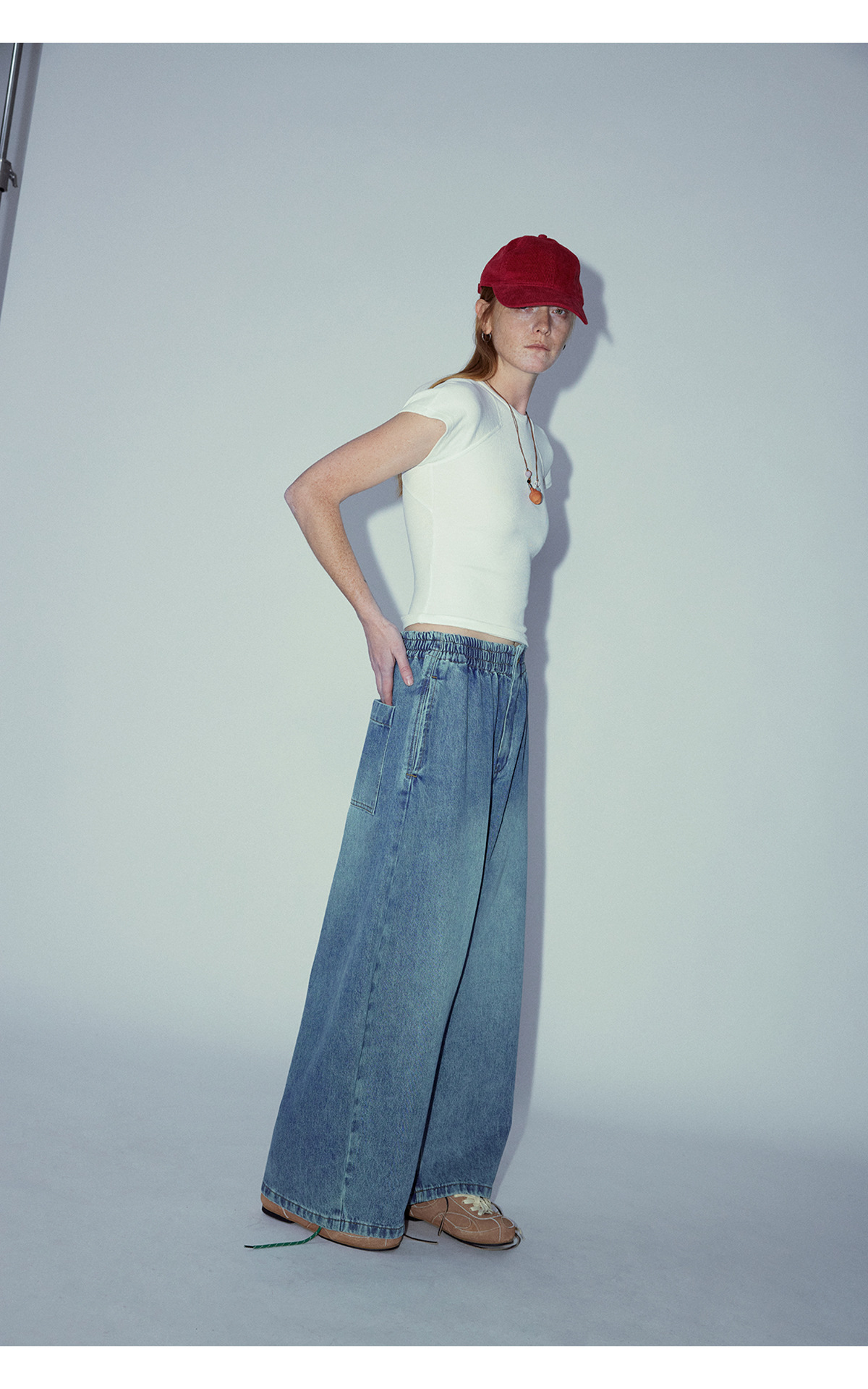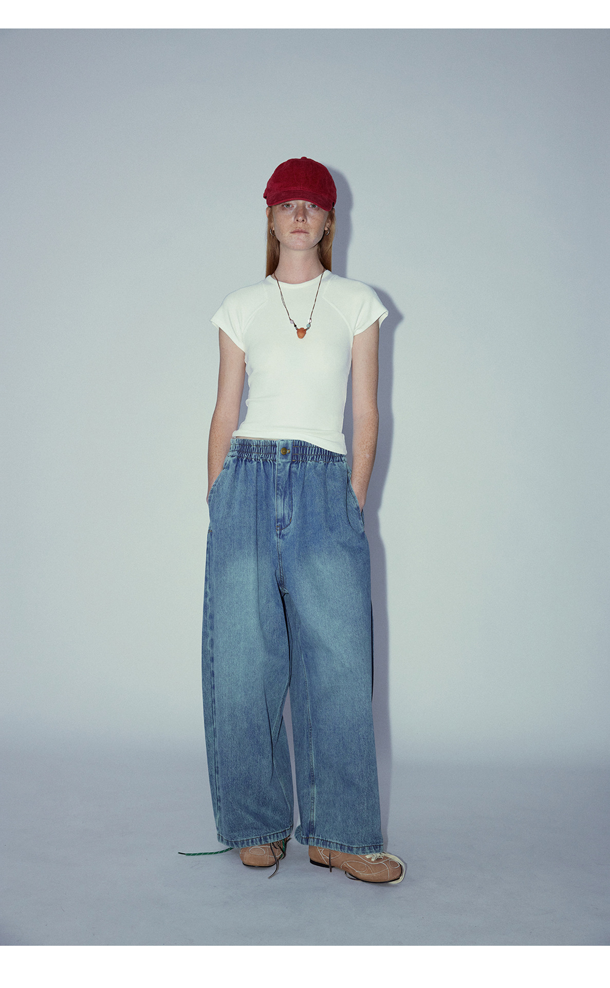 [언제] 새로운 탄성 허리 바나나 청바지 V7656