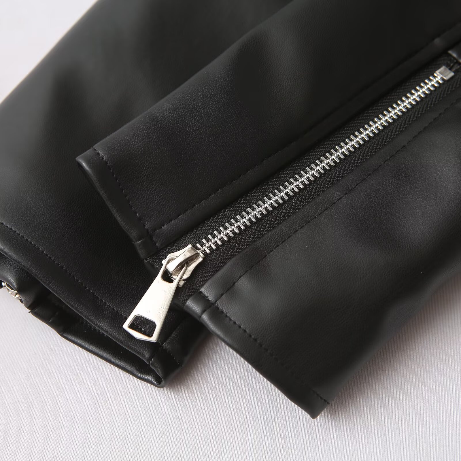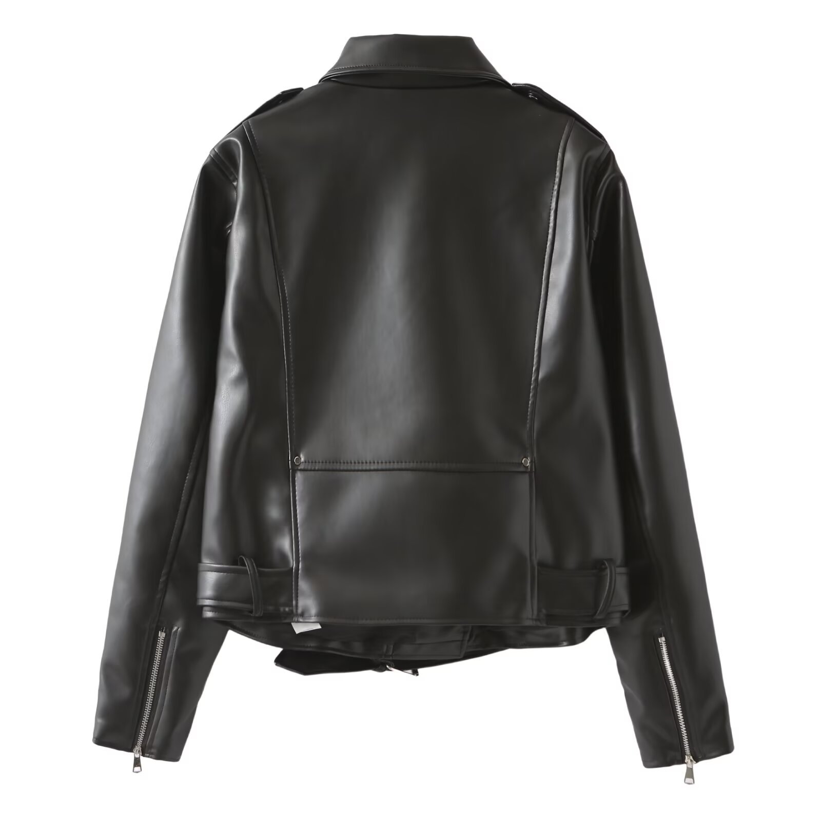 유럽과 미국 스타일의 국경 대외 무역 여성의 2025 패션 블랙 슬림 핏 모조 가죽 코트 짧은 가죽 오토바이 재킷
