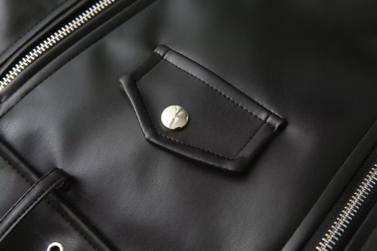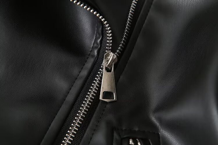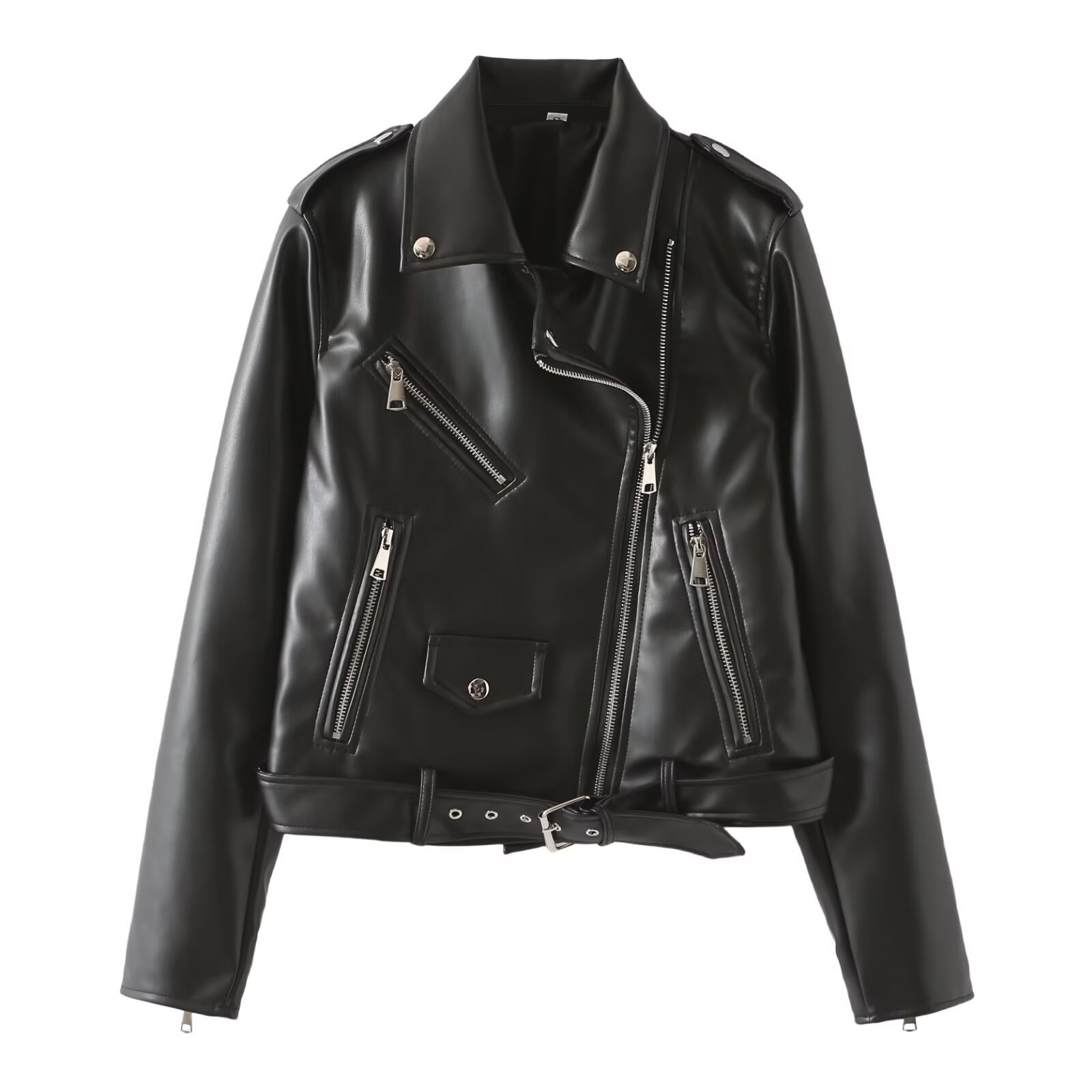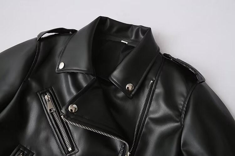 유럽과 미국 스타일의 국경 대외 무역 여성의 2025 패션 블랙 슬림 핏 모조 가죽 코트 짧은 가죽 오토바이 재킷스토어 가기