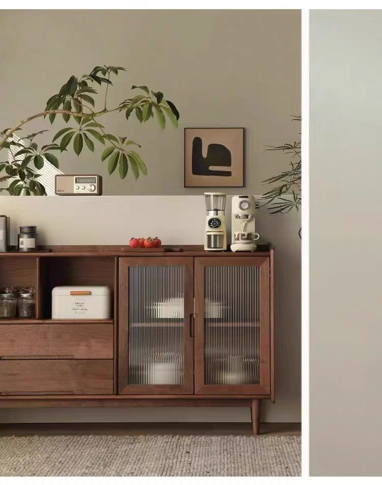 간단한 거실 저장 캐비닛 호두 벽 주방 통합 저장 차 북유럽 솔리드 우드 다이닝 사이드 작은 아파트스토어 가기