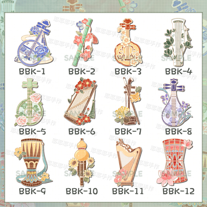 악기 골동품 음악 냉장고 스티커 Pipa Xiao Guzheng Guyue 철 돌 장식 자석 어린이 친구 선물