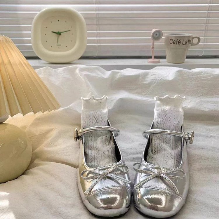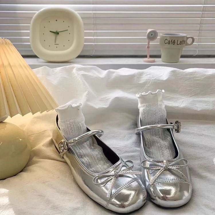실버 활 얕은 입 발레 신발 여성의 2025 봄 새로운 프랑스 플랫 메리 제인 레트로 작은 가죽 신발