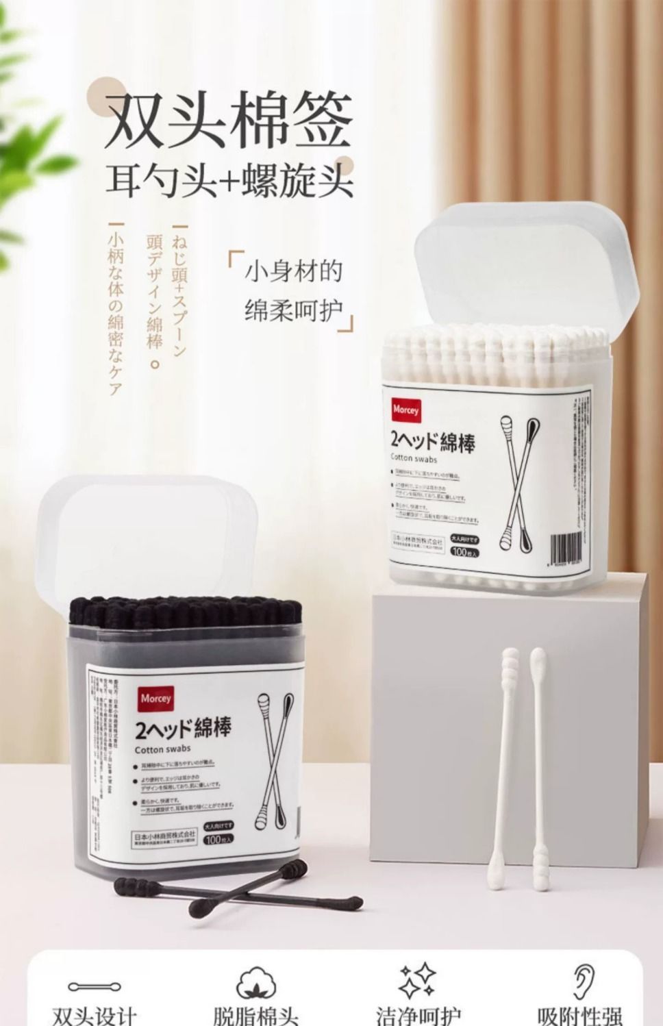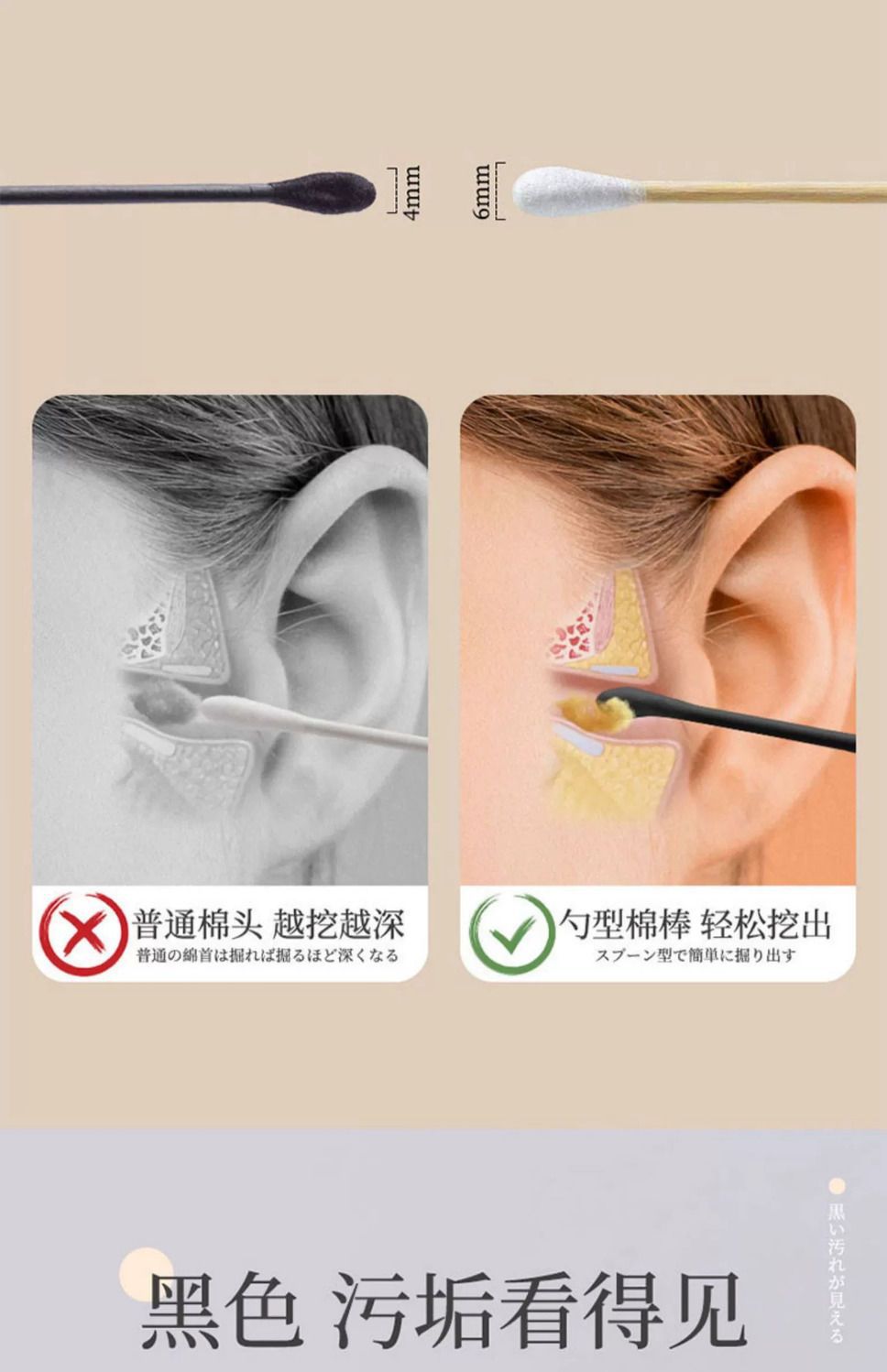 특수 귀 따기 면 면봉 블랙 더블 헤드 일회용 귀 파기 스푼 코튼 스틱 귀 코튼 스틱 포인팅 메이크업스토어 가기