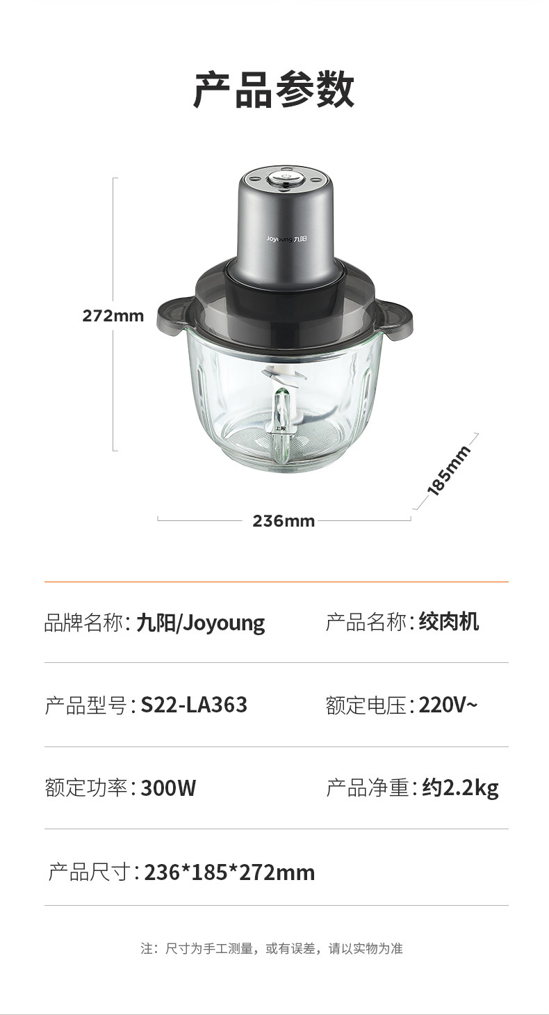 Jiuyang S22-LA363 고기 분쇄기 전기 보조 식품 요리 믹서 다단계 민서 고기 민서 야채 민서스토어 가기