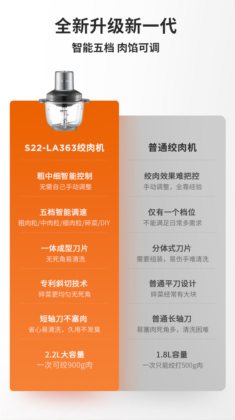 Jiuyang S22-LA363 고기 분쇄기 전기 보조 식품 요리 믹서 다단계 민서 고기 민서 야채 민서