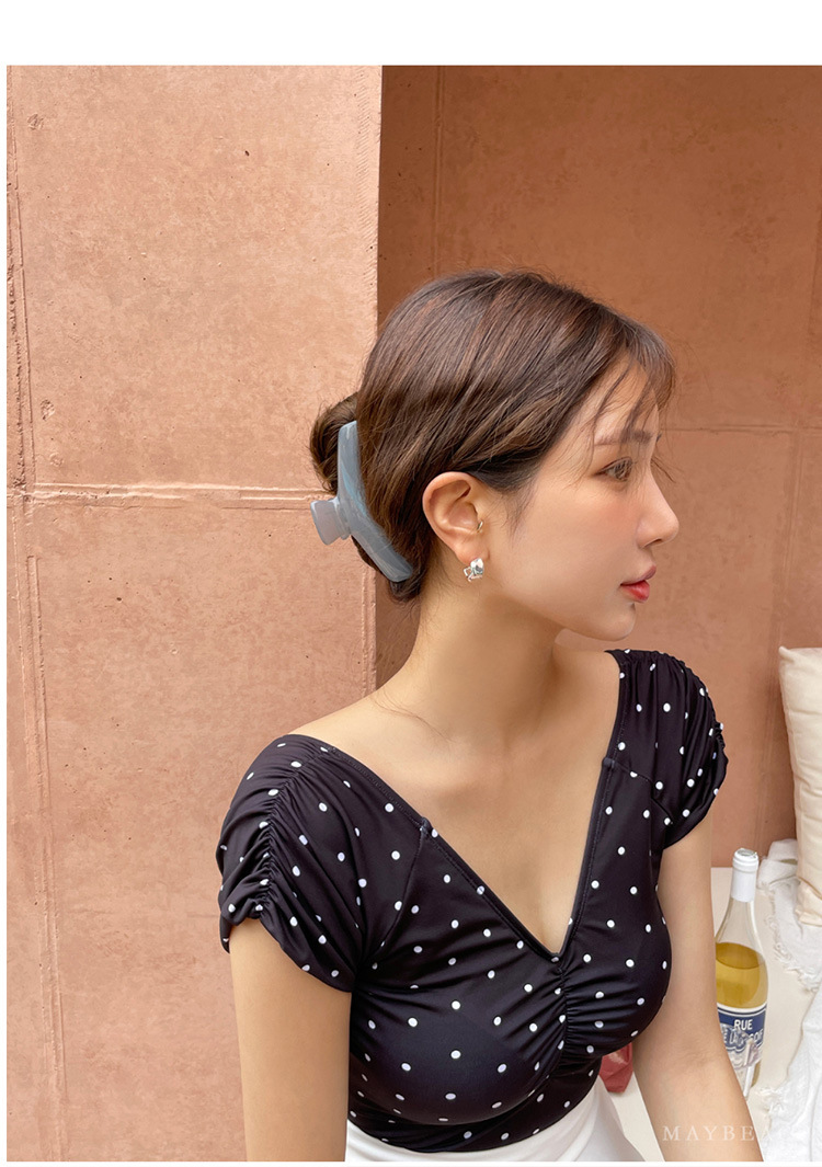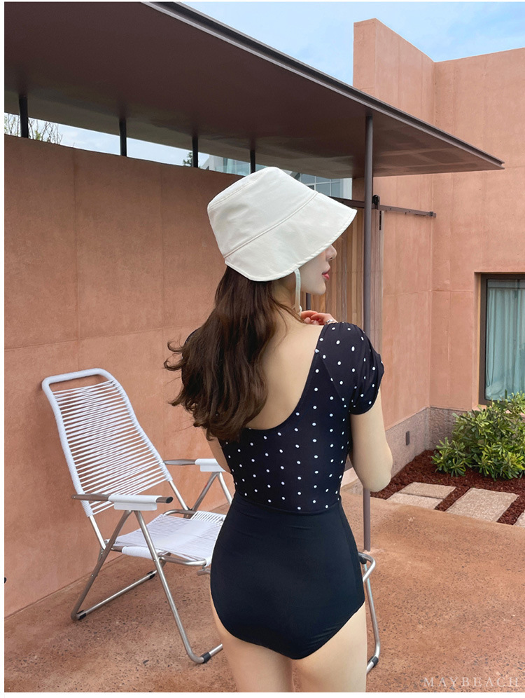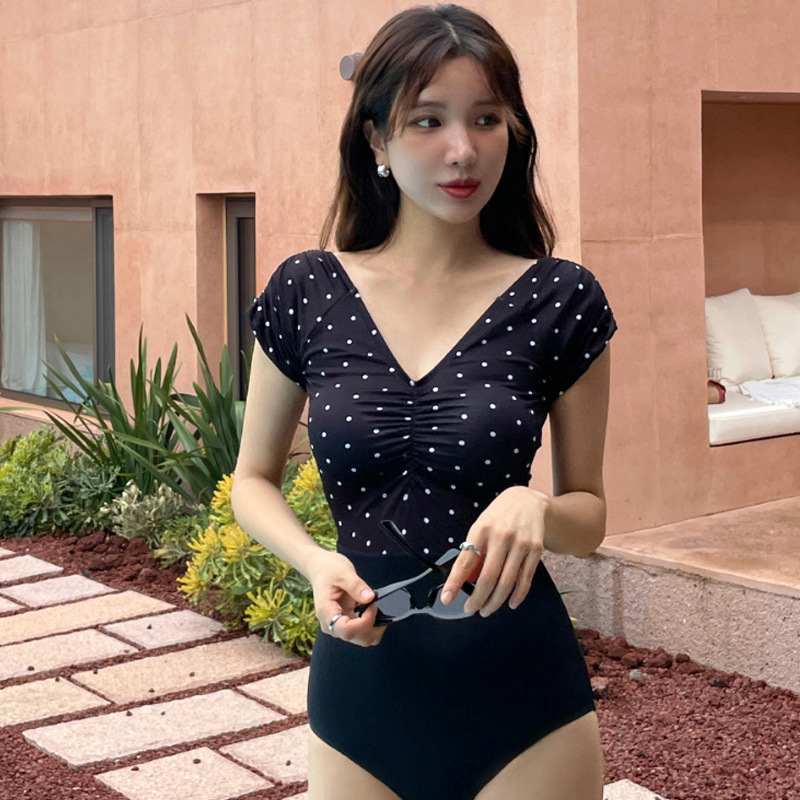 새로운 소녀의 폴라 도트 스티칭 꽉 조이는 공주 반팔 V 넥 푸시 업 삼각형 수영복 학생들을위한 공주스토어 가기