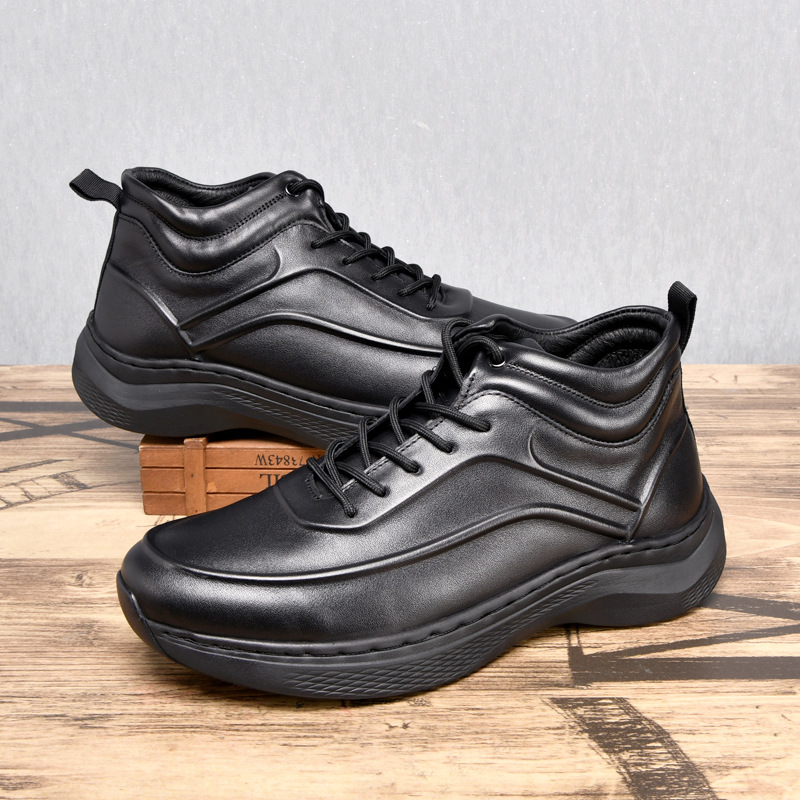 정품 가죽 발목 신발 기모 따뜻한 남성 신발 가을 및 겨울 새로운 탑 레이어 Cowhide 솔리드 두꺼운 블랙 캐주얼 가죽 신발 면화스토어 가기