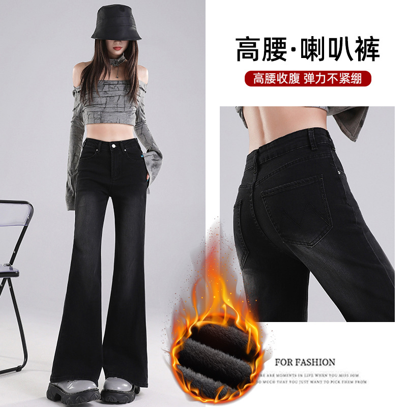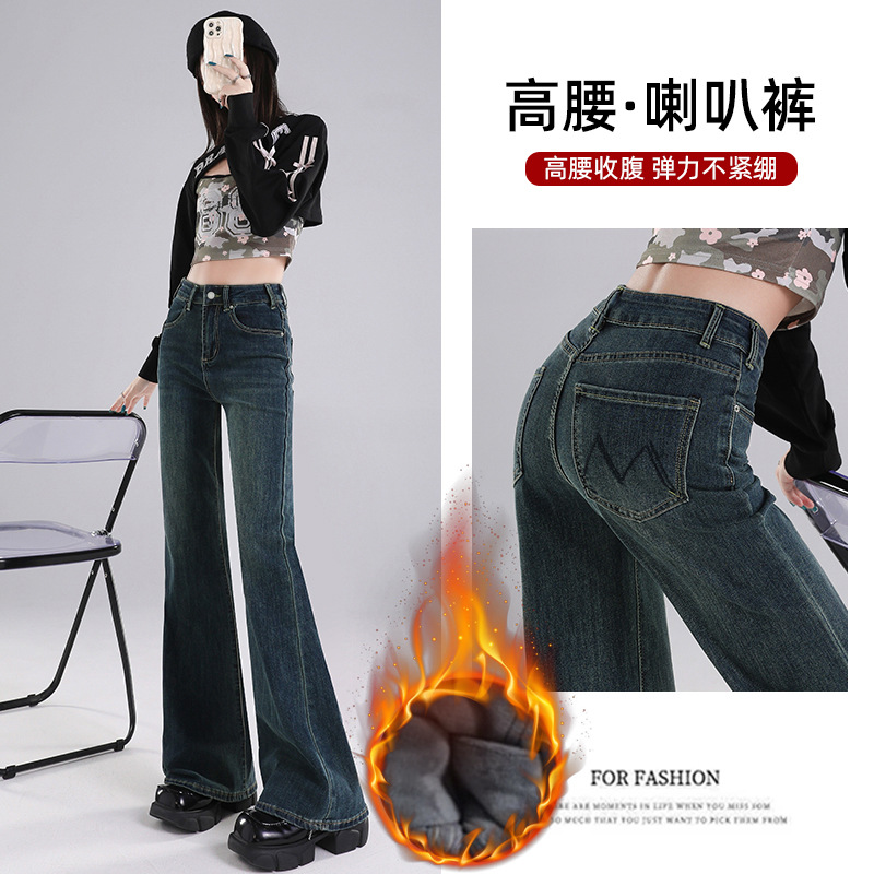 여성용 가을 겨울용 벨벳 안감 두꺼운 레트로 하이웨이스트 슬림핏 스몰 사이즈 일자 롱 팬츠스토어 가기