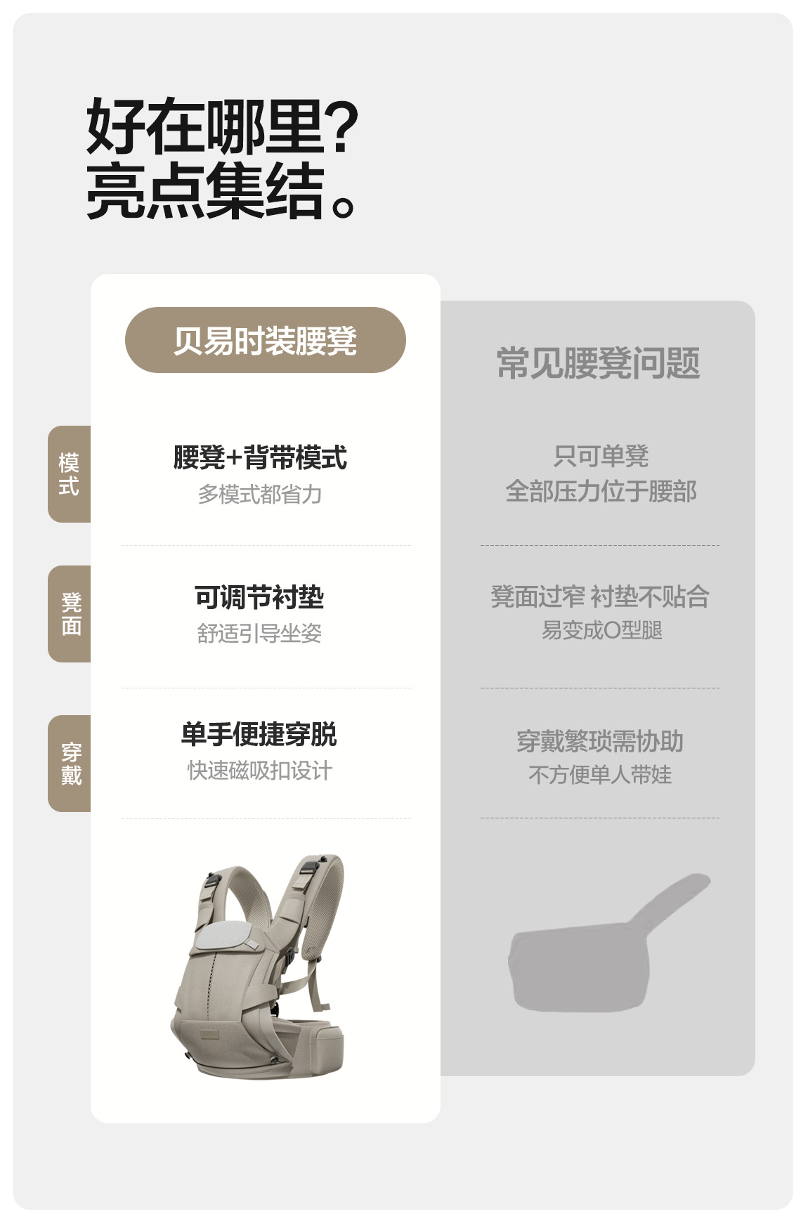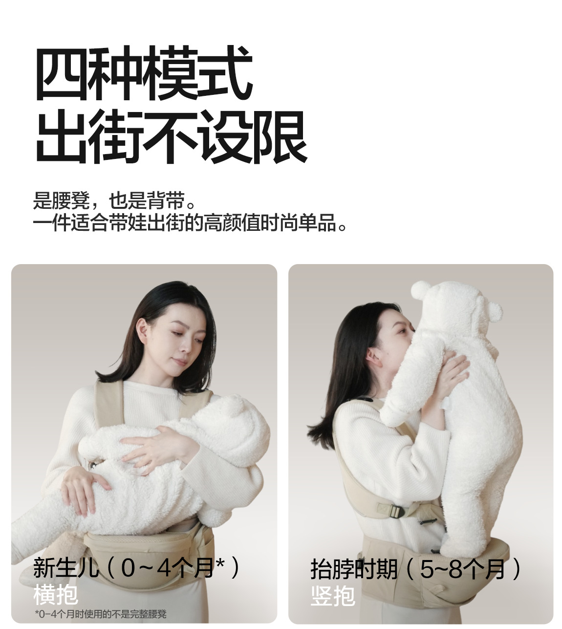 베이이 패션 허리 의자 아기 스트랩 2-in -1 아기 경량 사계절 여행 이중 사용 아기 지주 유물