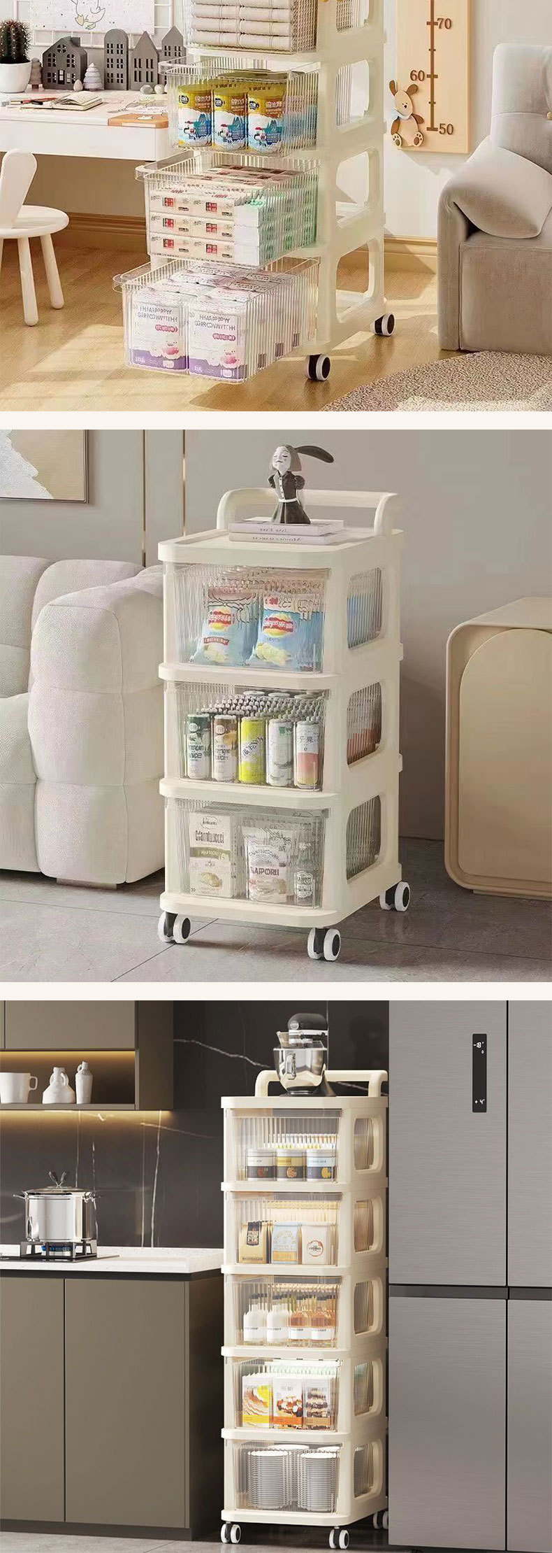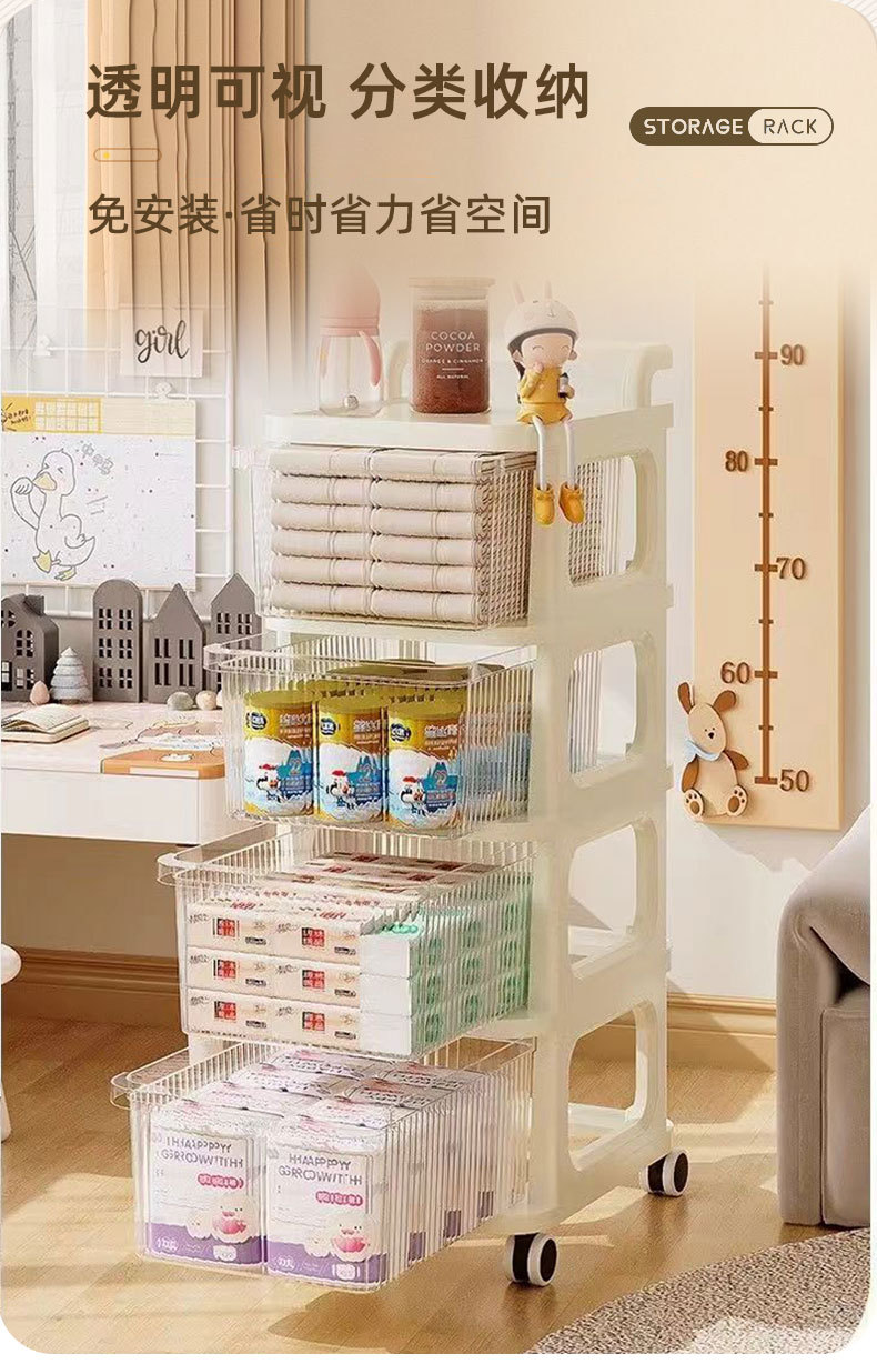 가정용 이동식 다층 서랍 유형 스토리지 랙 장난감 스토리지 랙 거실 침실 스낵 트롤리 스토리지 랙