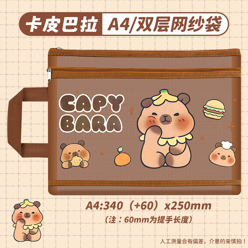 Kappi Bala A4 더블 레이어 투명 메쉬 파일 가방 대용량 초등학생 특별 정보 테스트 종이 보관 가방스토어 가기