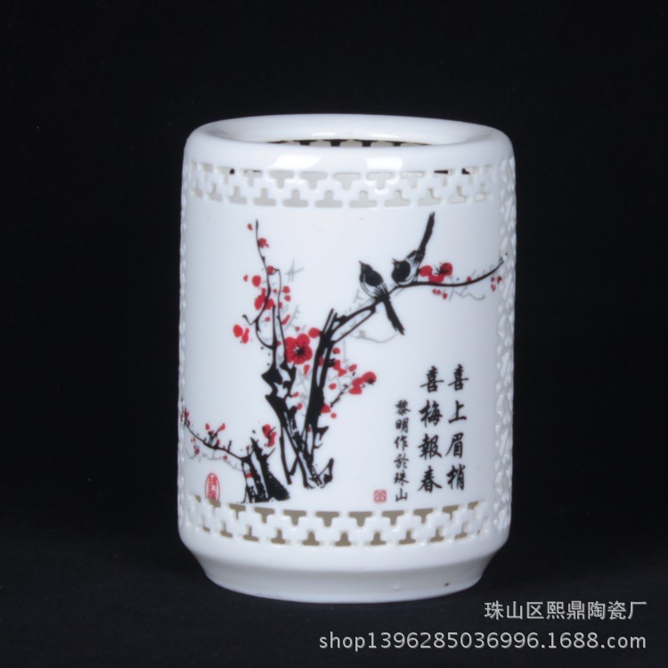 【物品清单包括】;镂空陶瓷笔筒一件