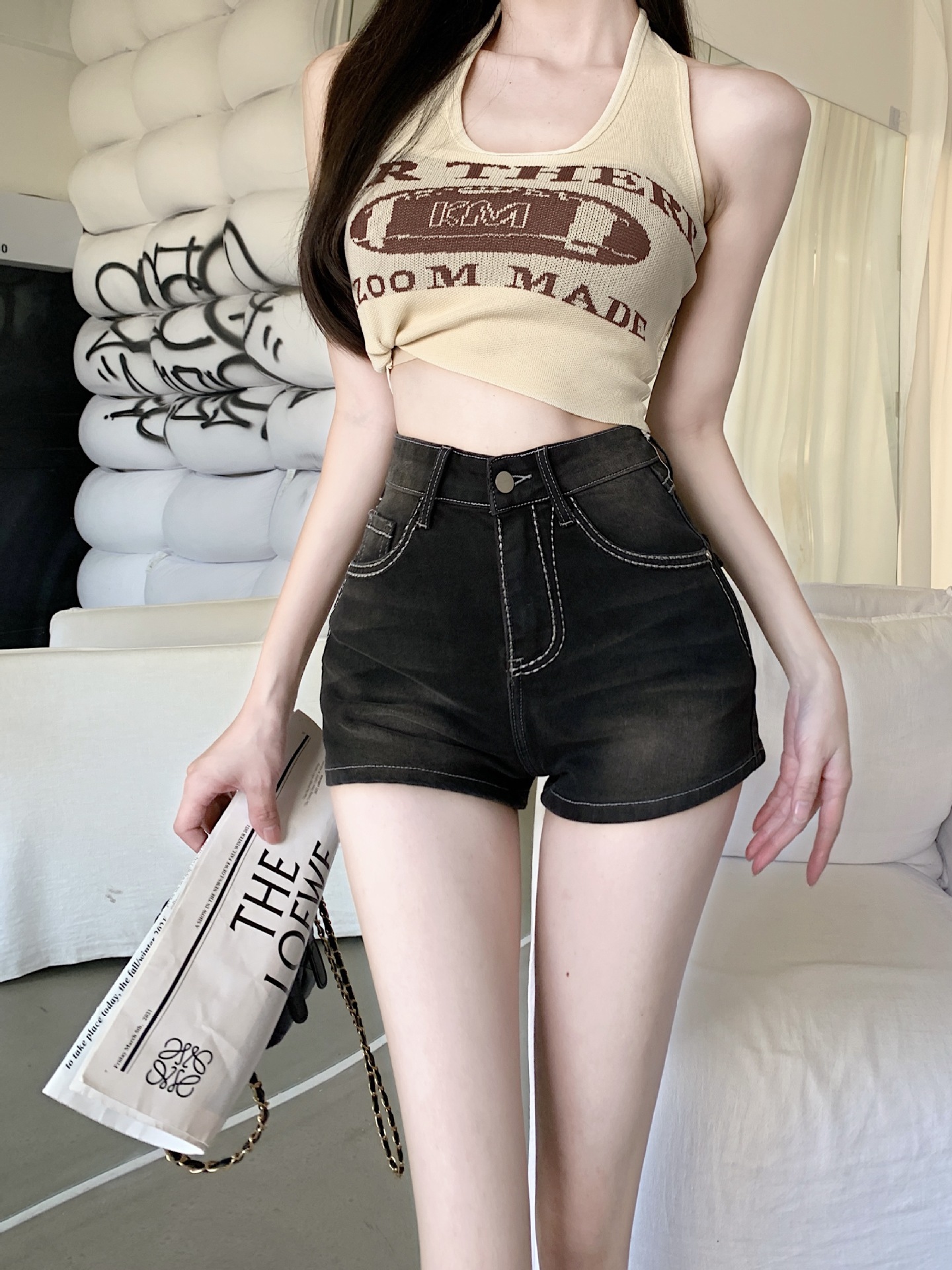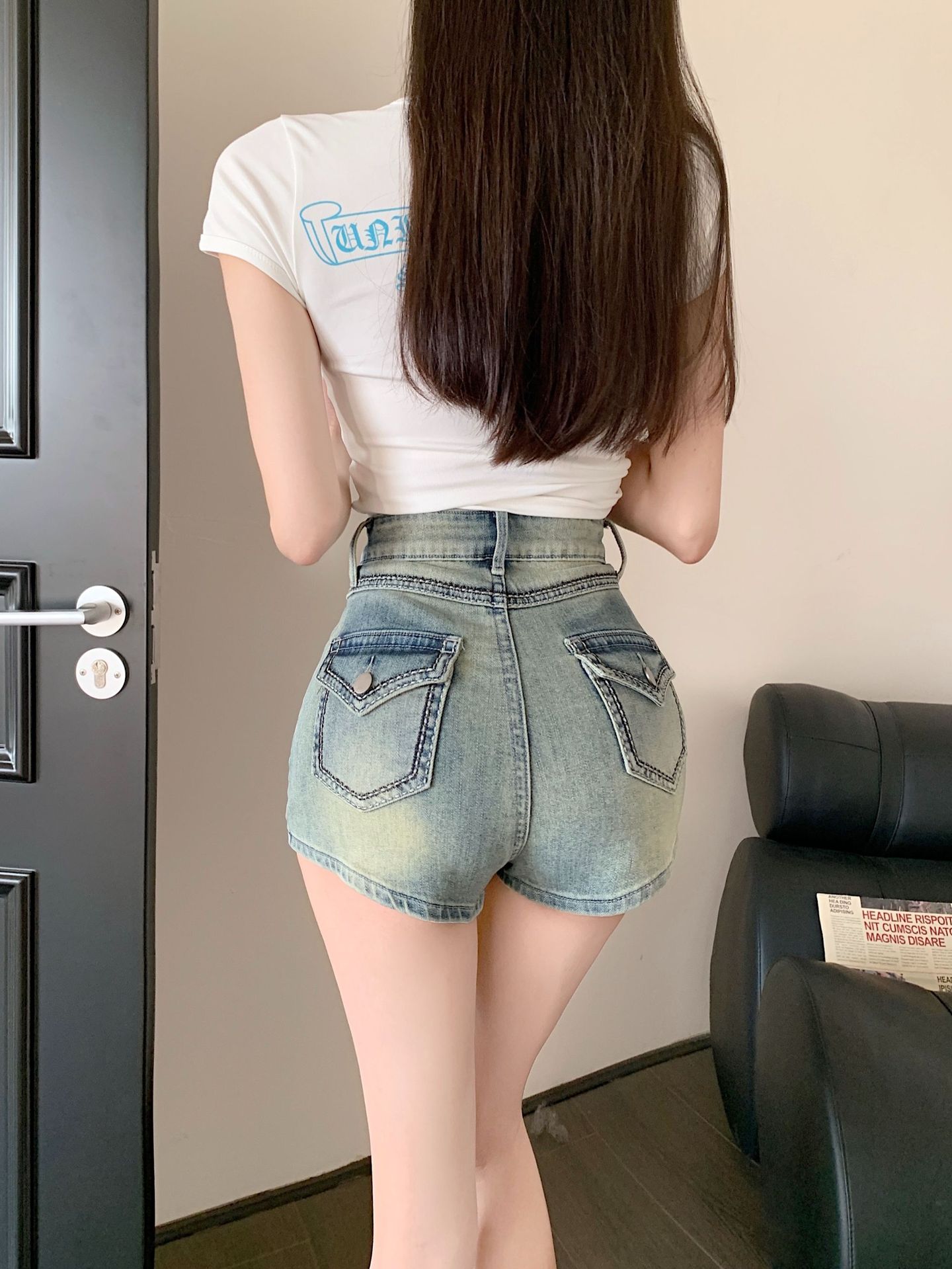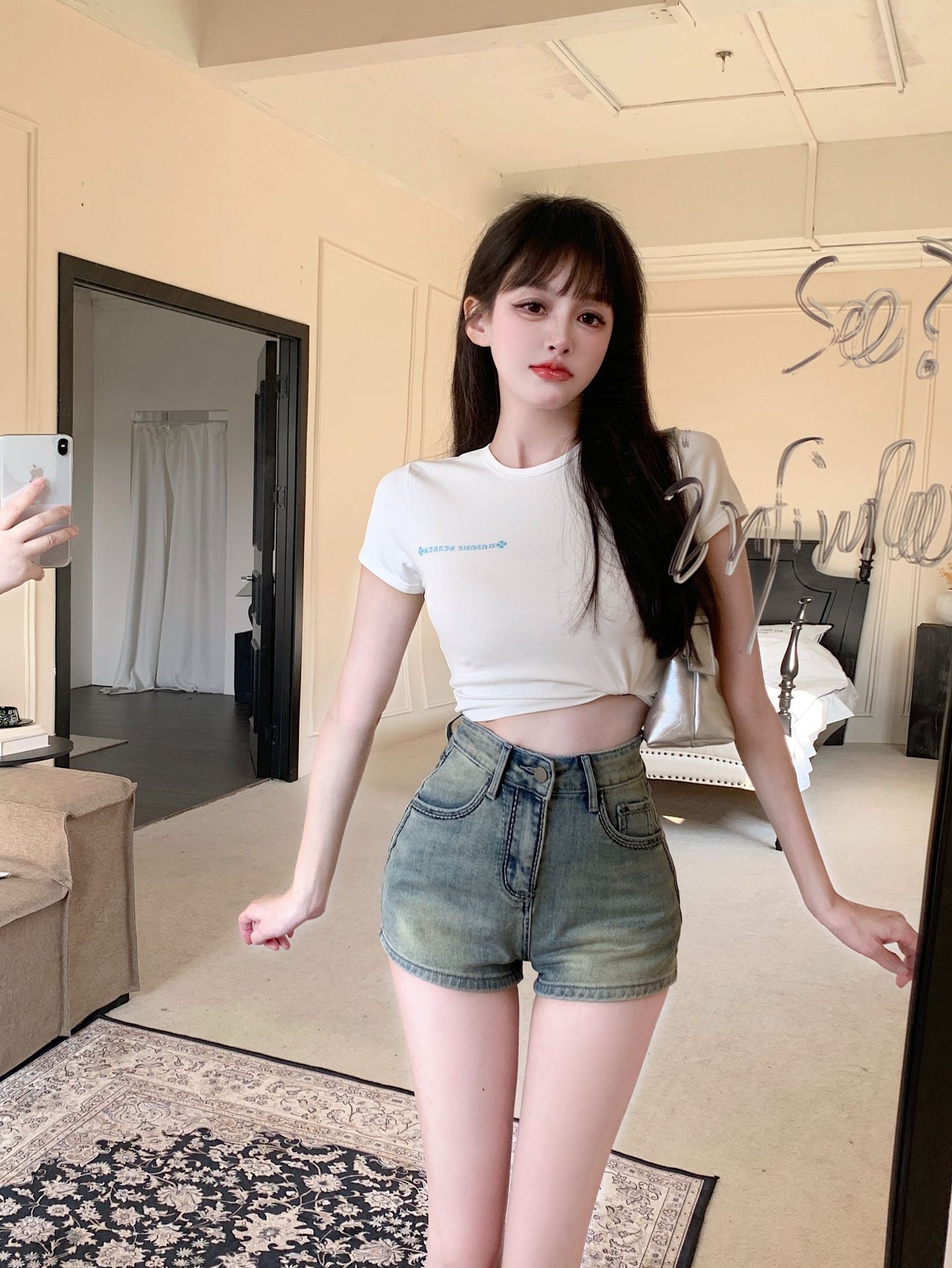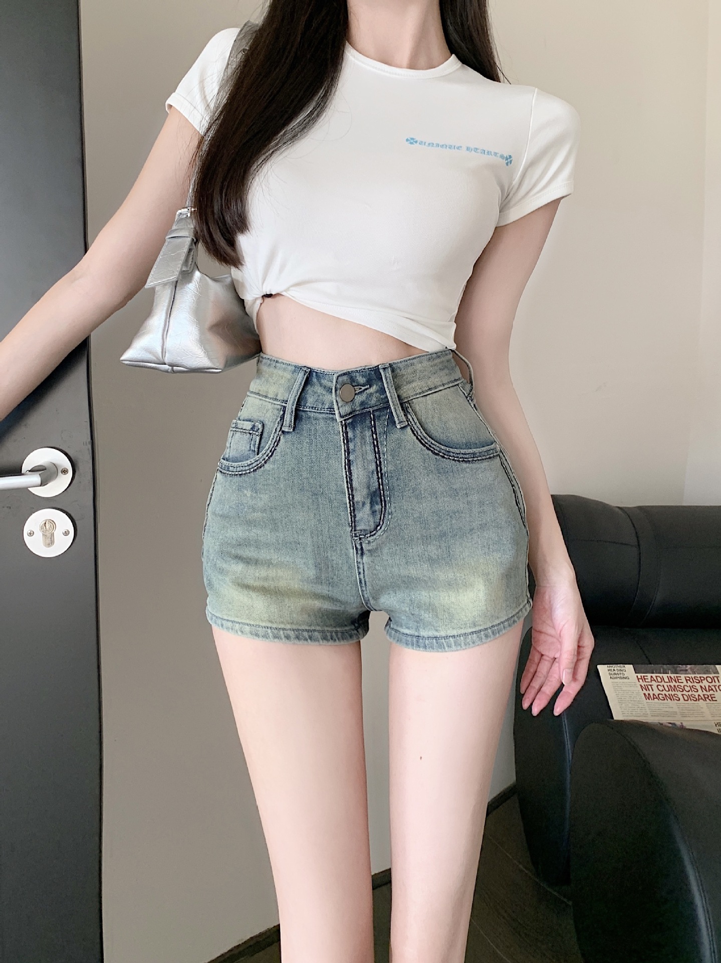 2025 라이트 컬러 데님 반바지 여성 여름 새로운 높은 허리 타이트 스트레치 슬림 핏 A-짧은 핫 트렌디 바지스토어 가기
