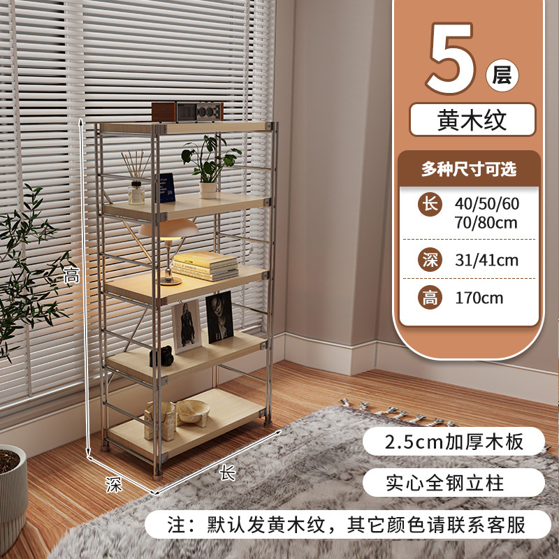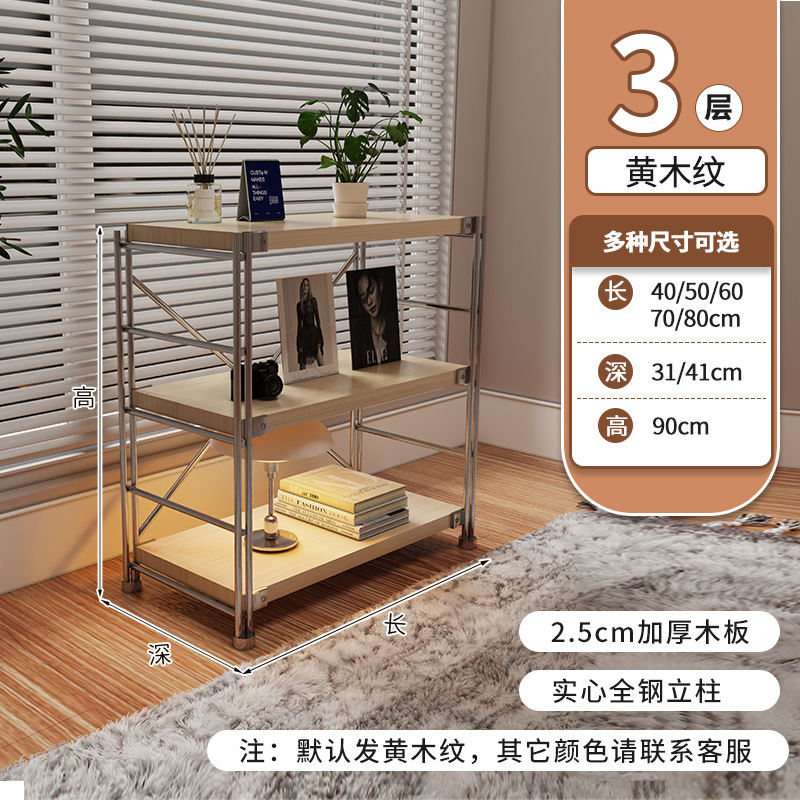 일본식 철제 나무 선반 책장, 바닥에 놓는 다층 거실 발코니 수납 선반, 주방 전자레인지 수납함