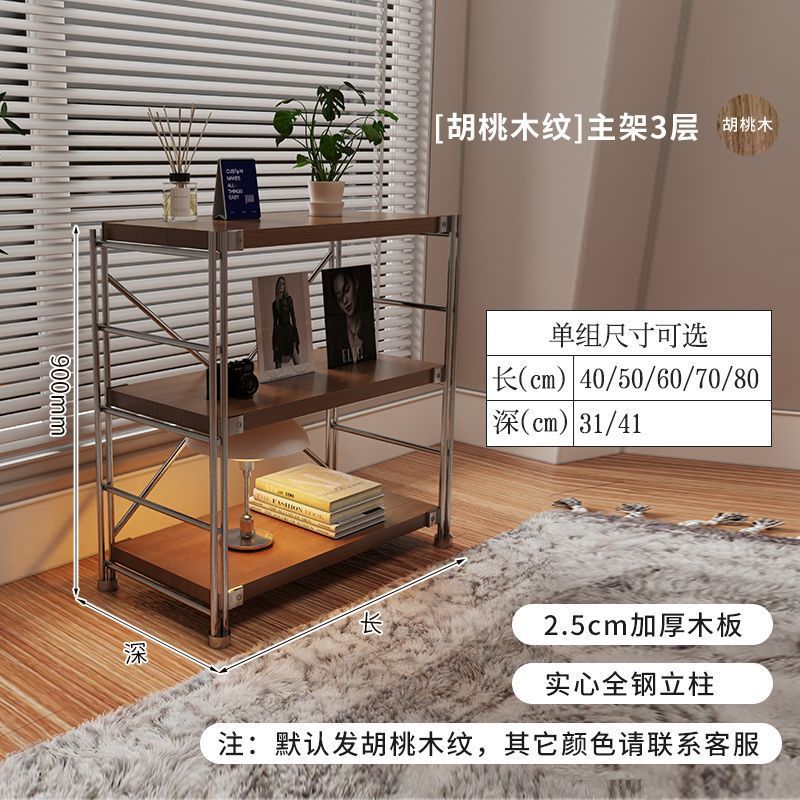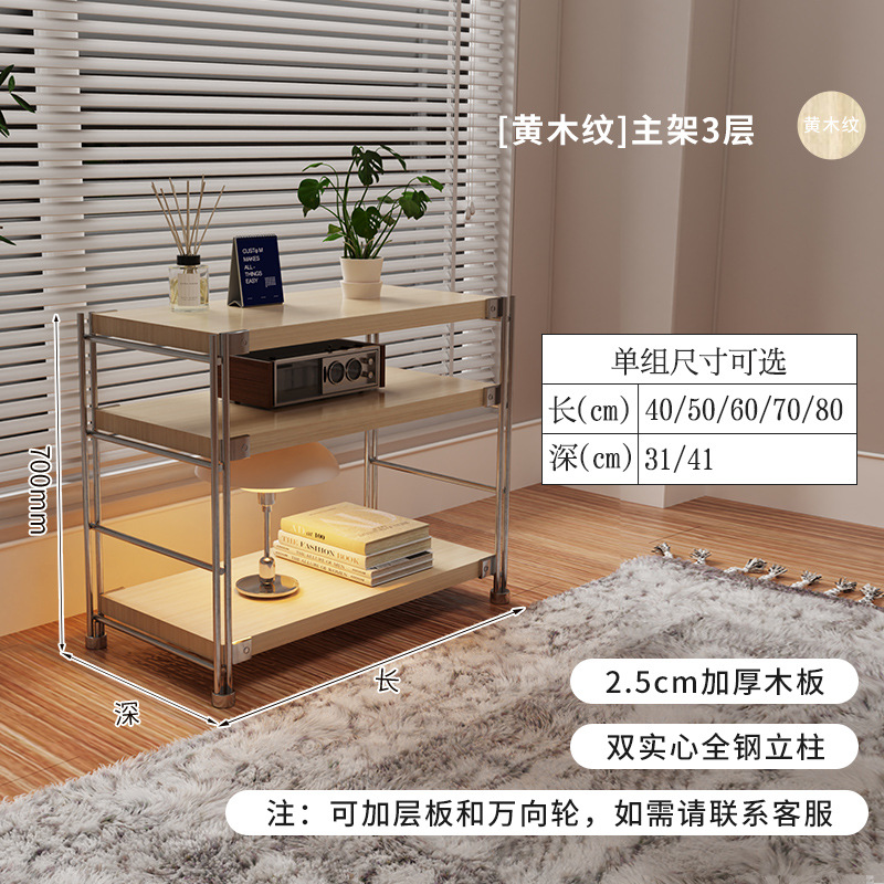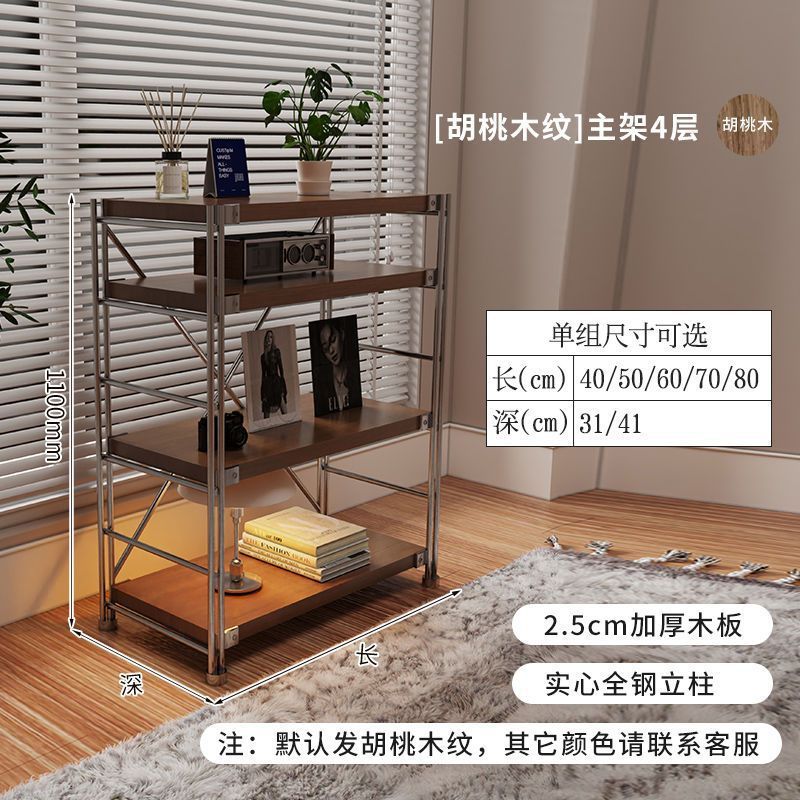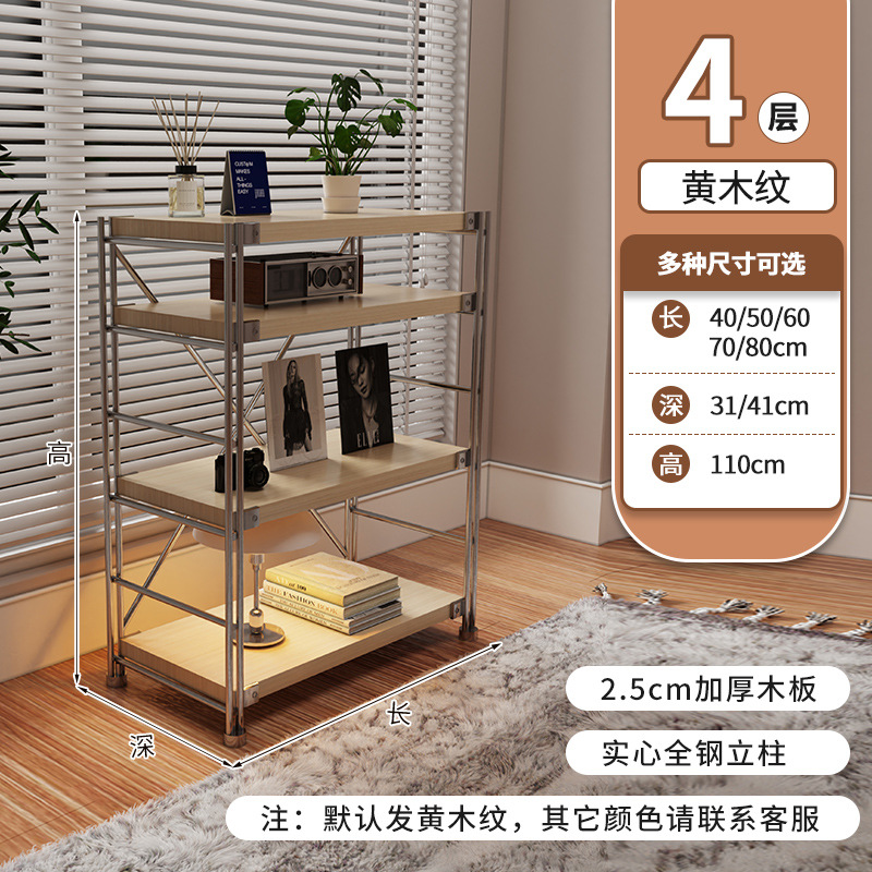 일본식 철제 나무 선반 책장, 바닥에 놓는 다층 거실 발코니 수납 선반, 주방 전자레인지 수납함스토어 가기