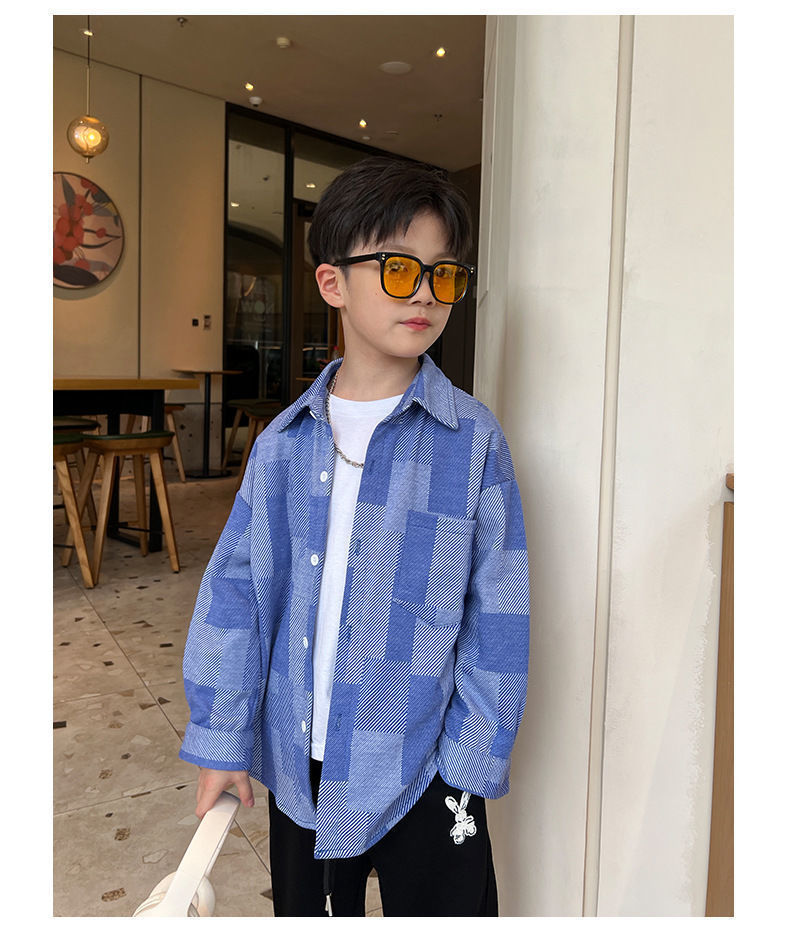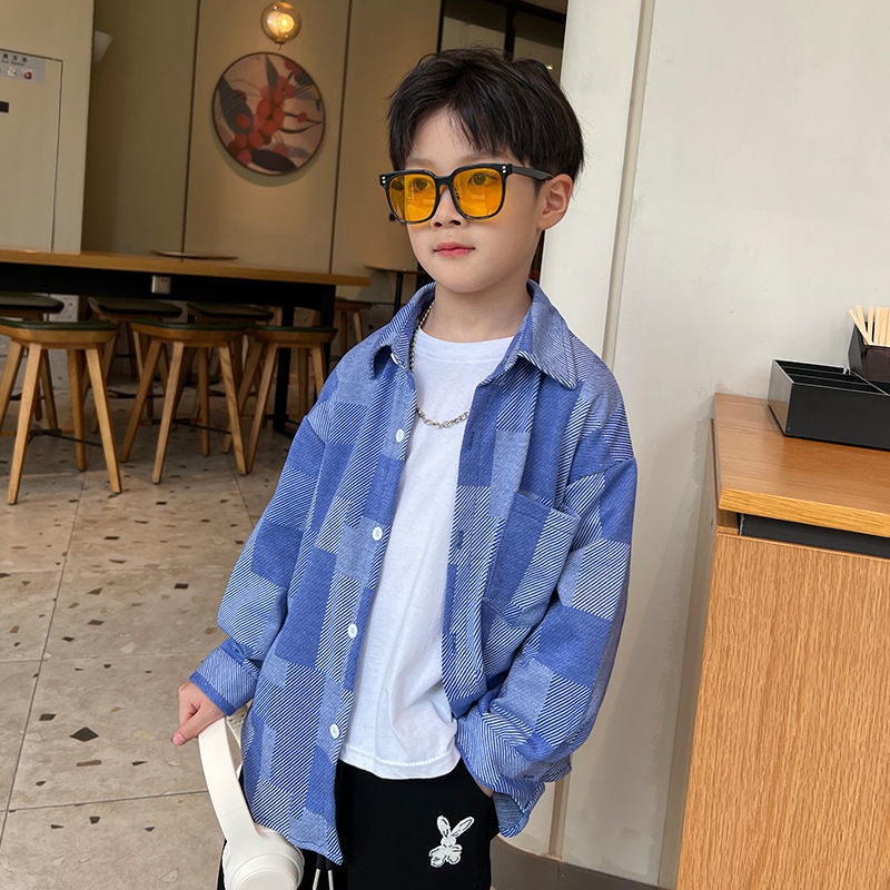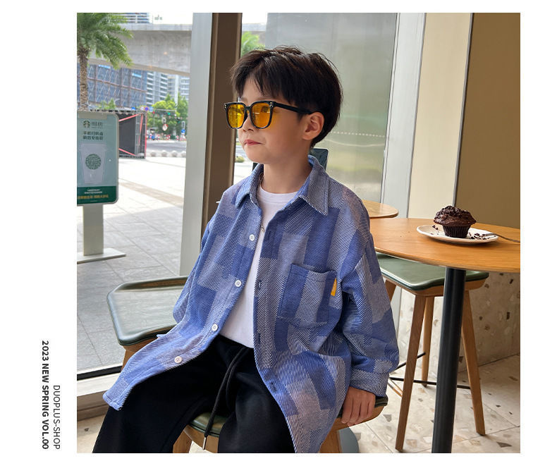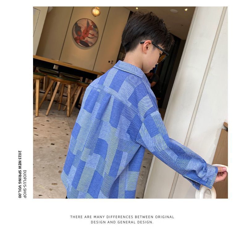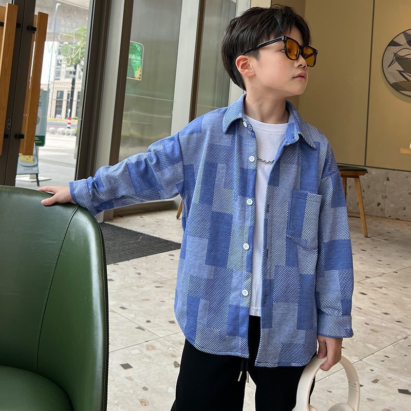 어린이 의류 소년 봄 옷 셔츠 2025 새로운 중대형 어린이 봄과 가을 소년 봄 데님 긴 소매 셔츠 트렌디스토어 가기