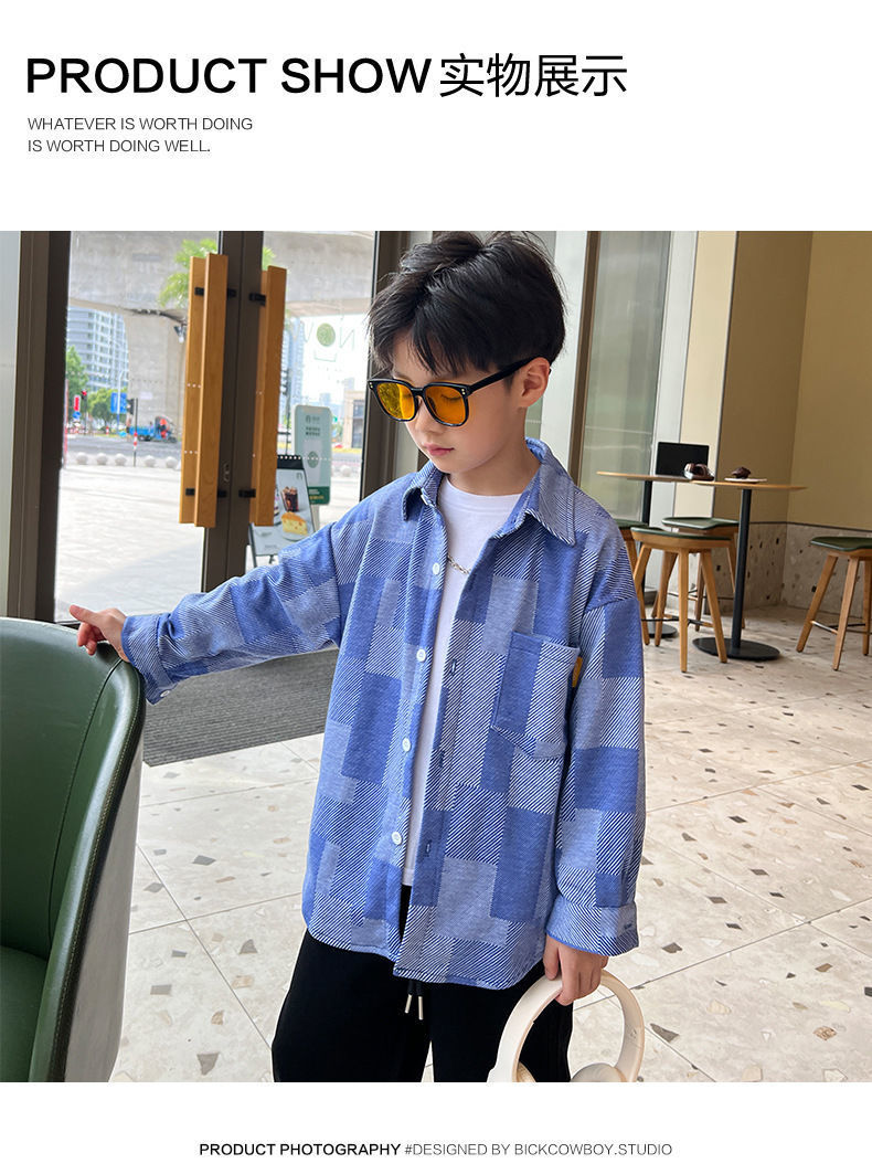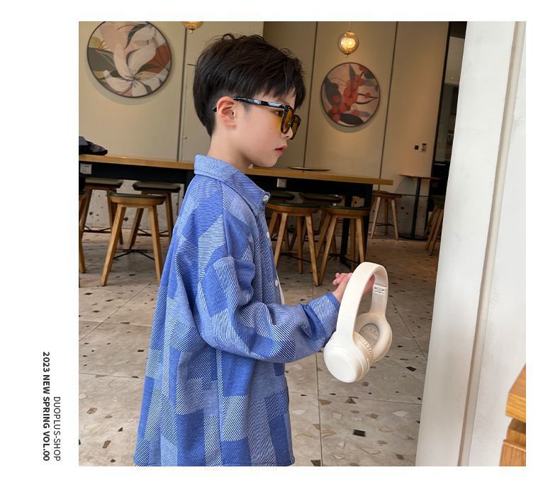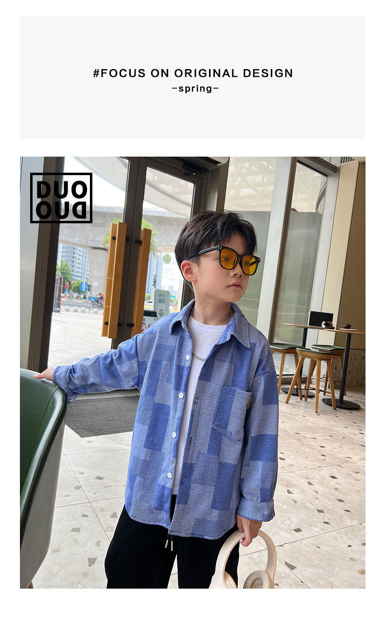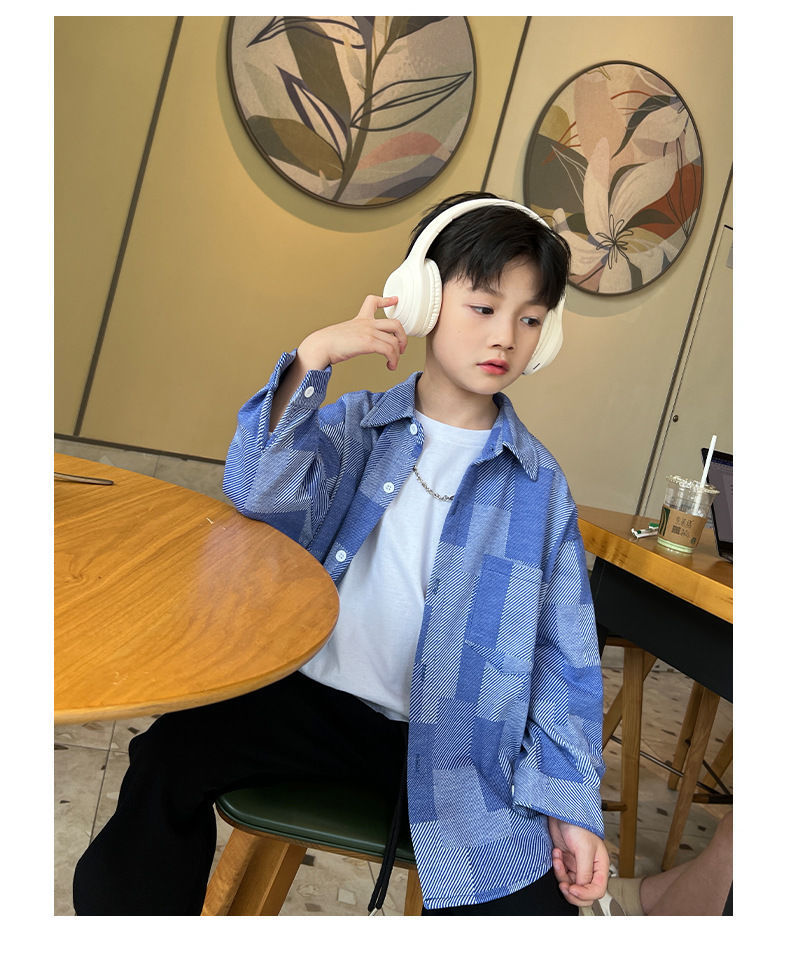 어린이 의류 소년 봄 옷 셔츠 2025 새로운 중대형 어린이 봄과 가을 소년 봄 데님 긴 소매 셔츠 트렌디스토어 가기