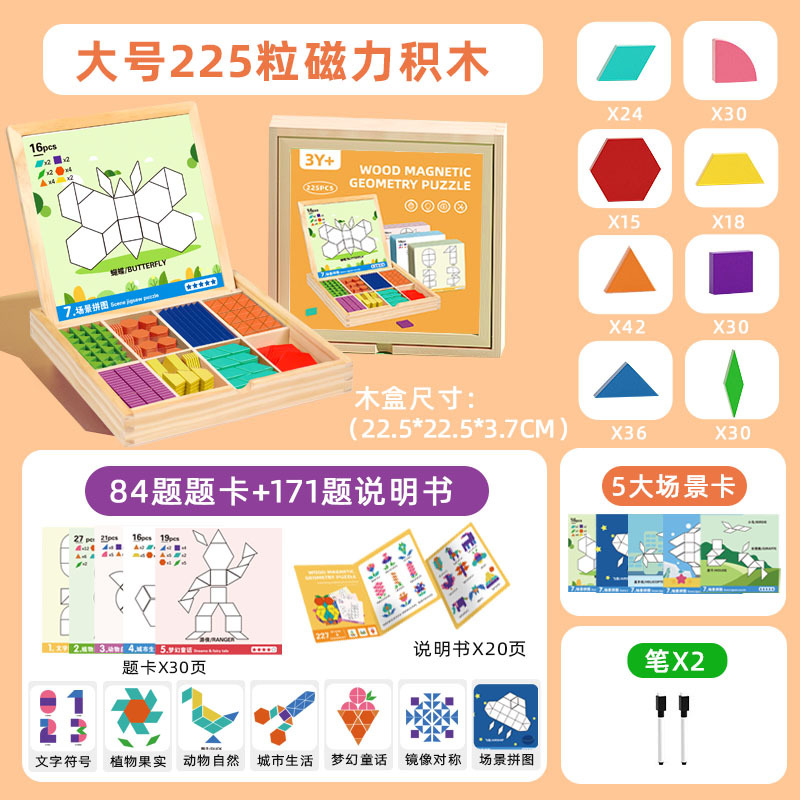 • [자석이 내장된 새로운 모델] 자석 탱그램 225개(설명서 + 질문 카드 + 장면 카드)