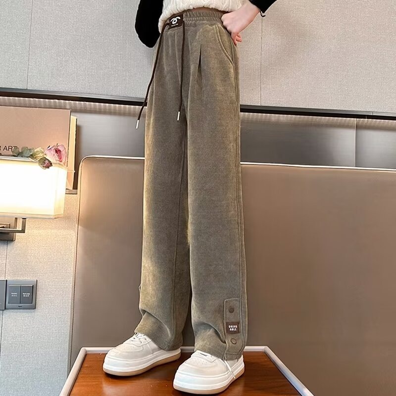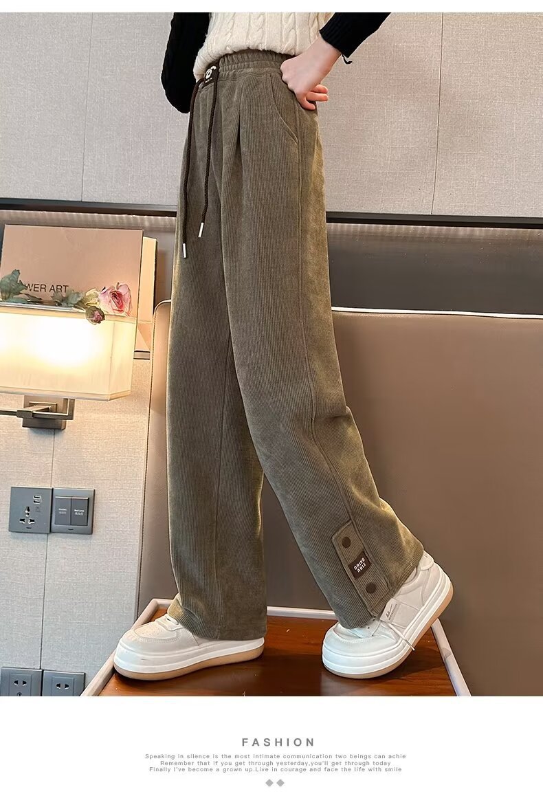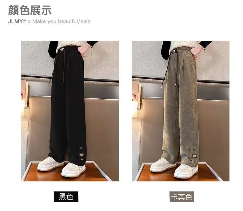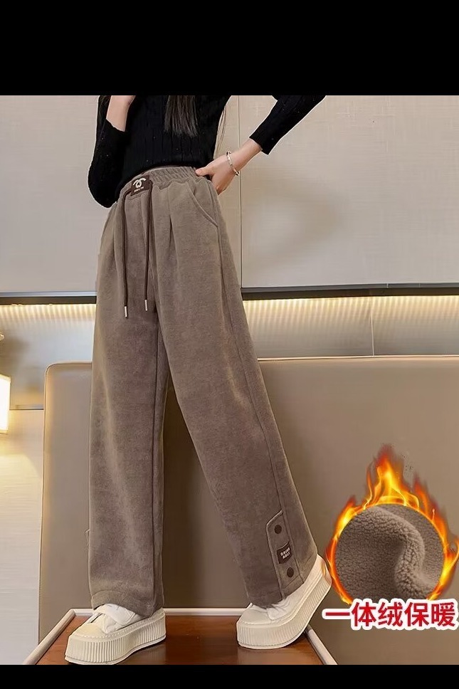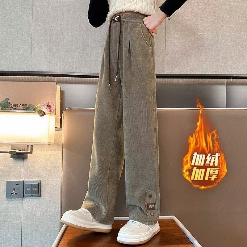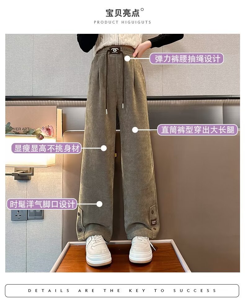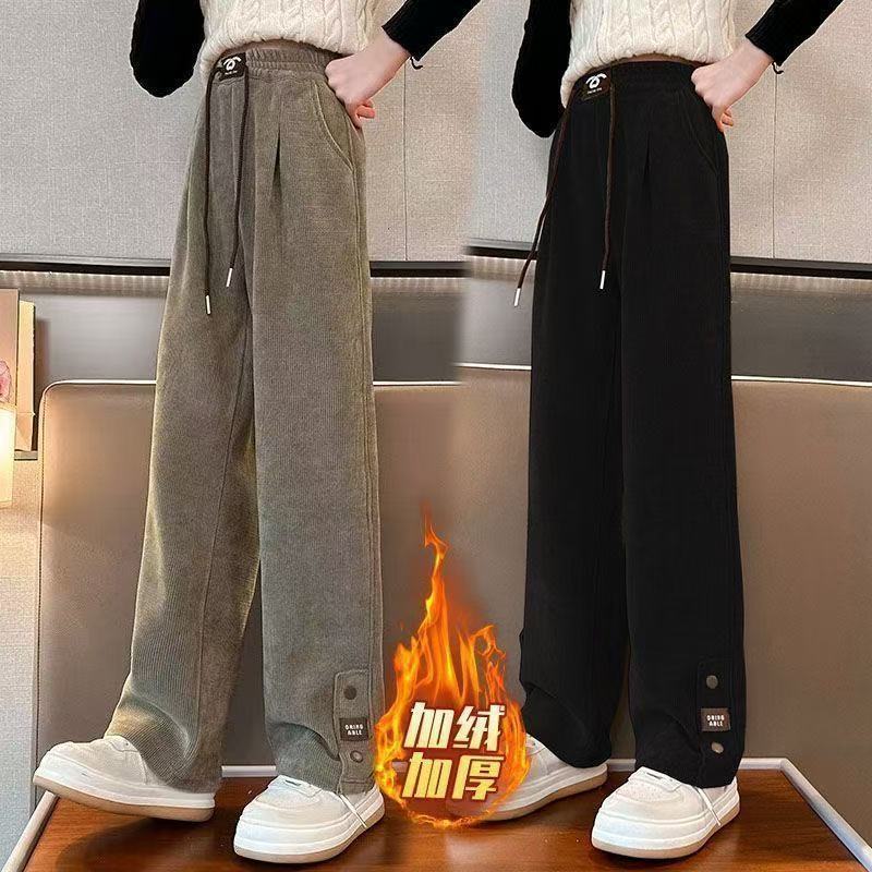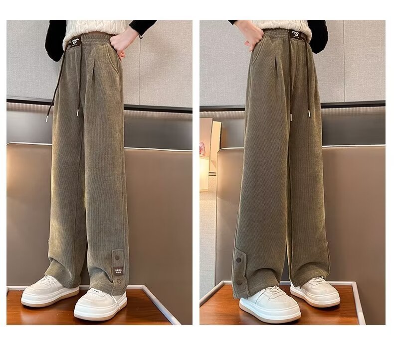 가을 겨울 기모 소녀 2025 바지 새로운 서양식 두꺼운 넓은 다리 바지 대형 어린이 한 조각 양털 스트레이트 바지스토어 가기