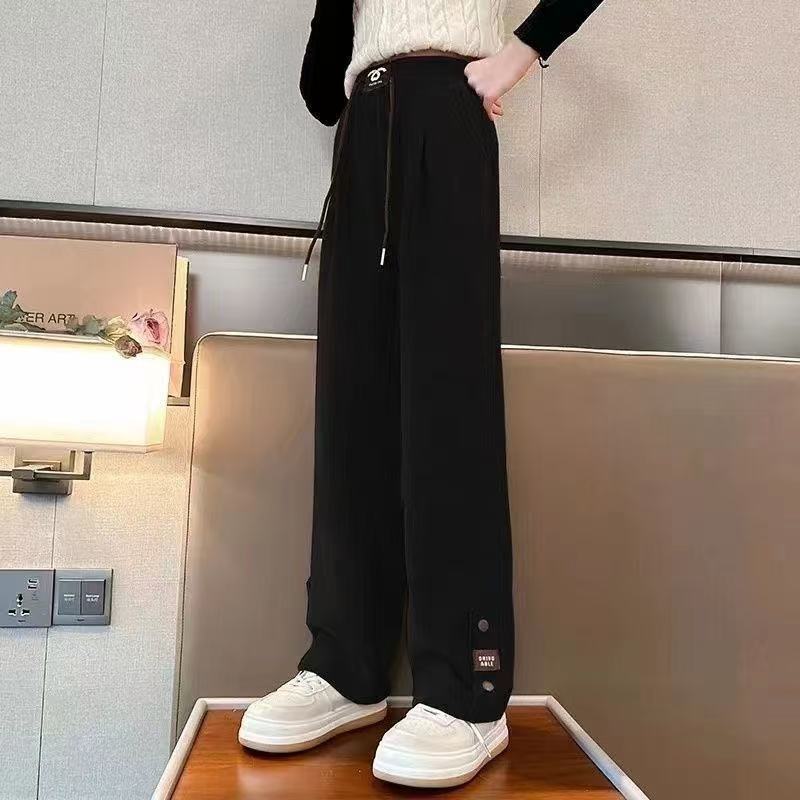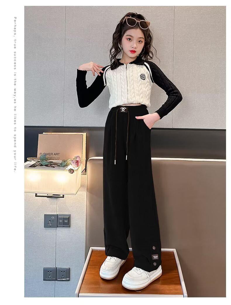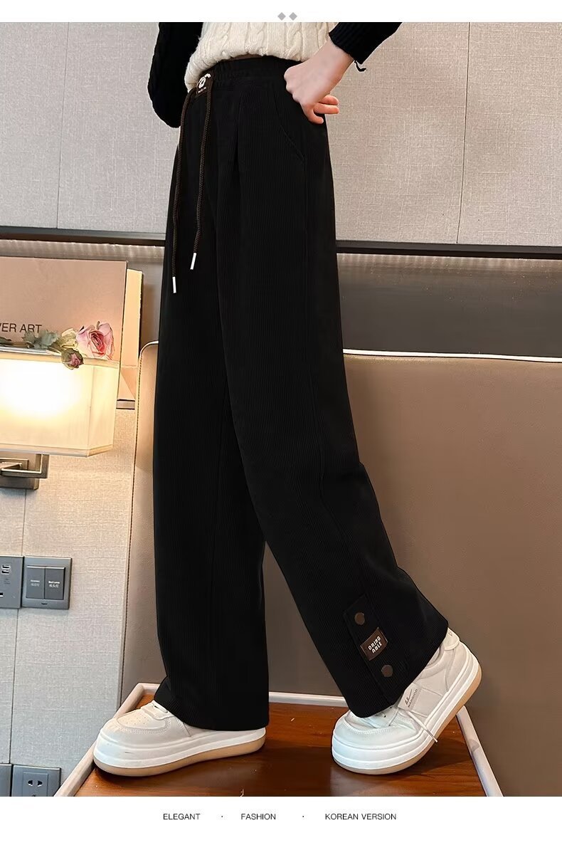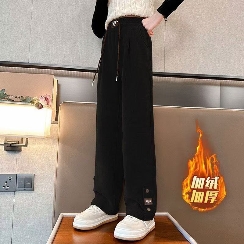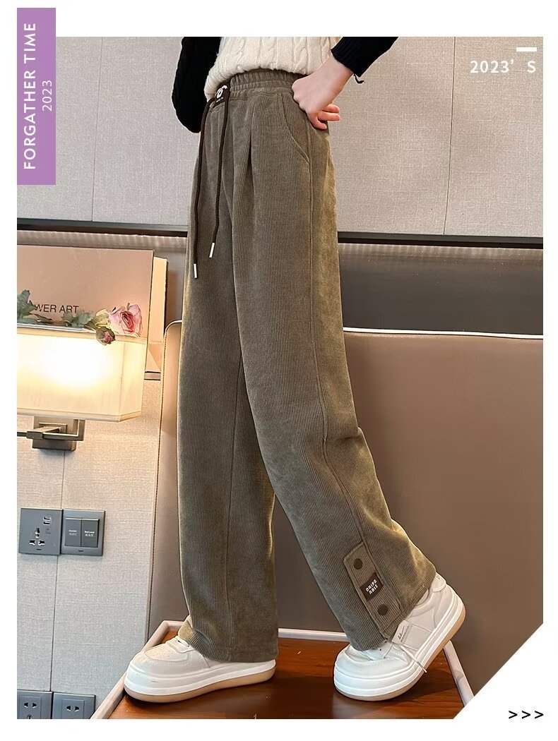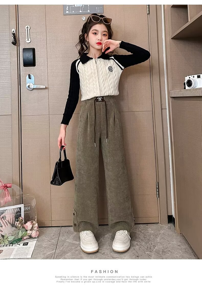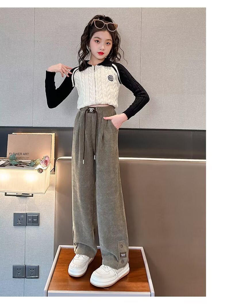 가을 겨울 기모 소녀 2025 바지 새로운 서양식 두꺼운 넓은 다리 바지 대형 어린이 한 조각 양털 스트레이트 바지스토어 가기
