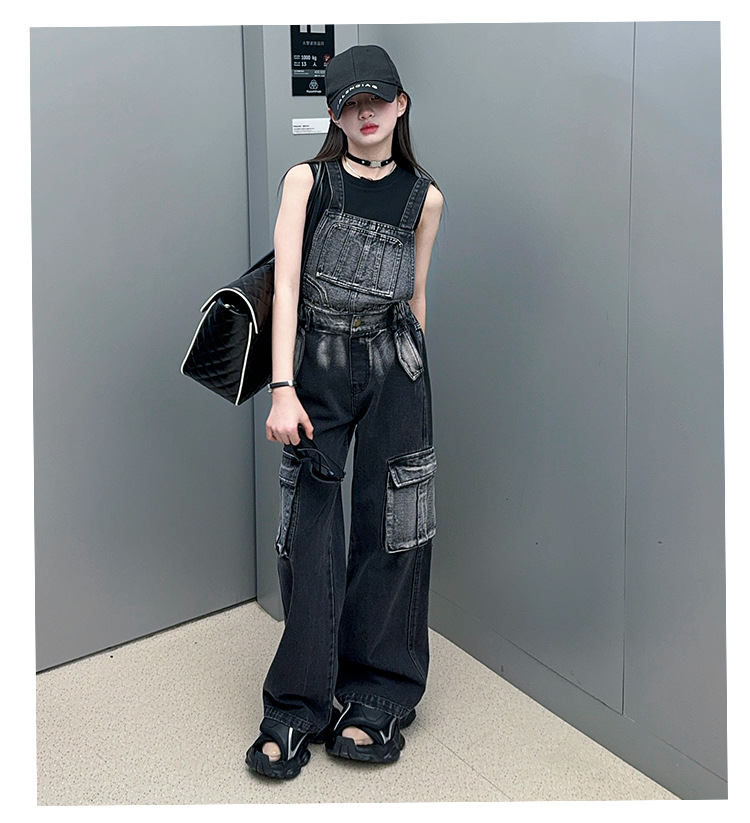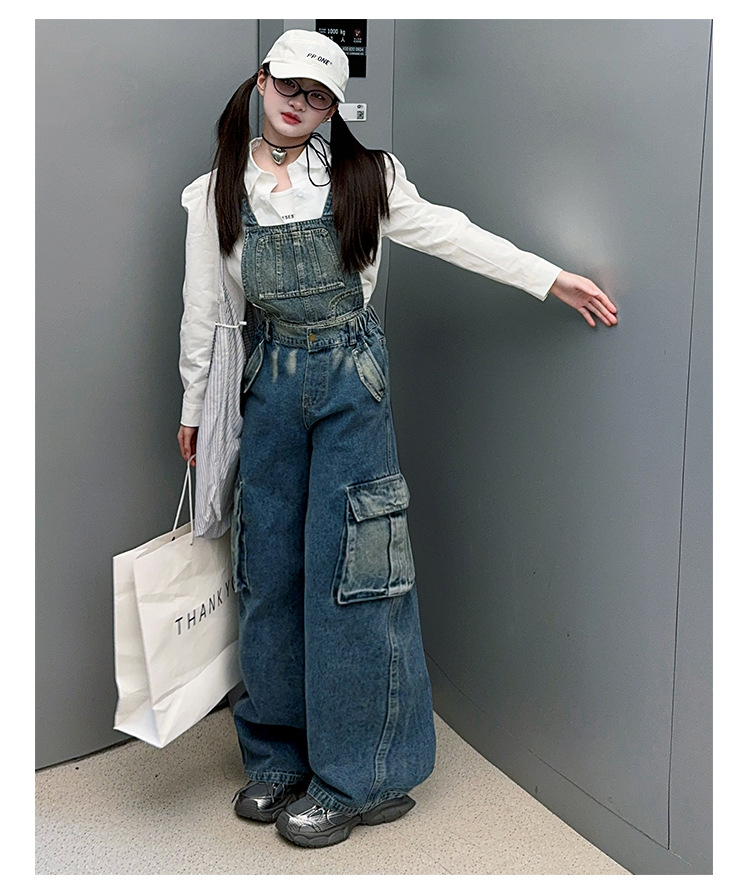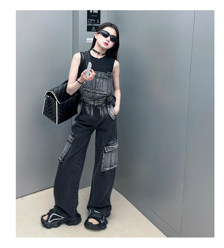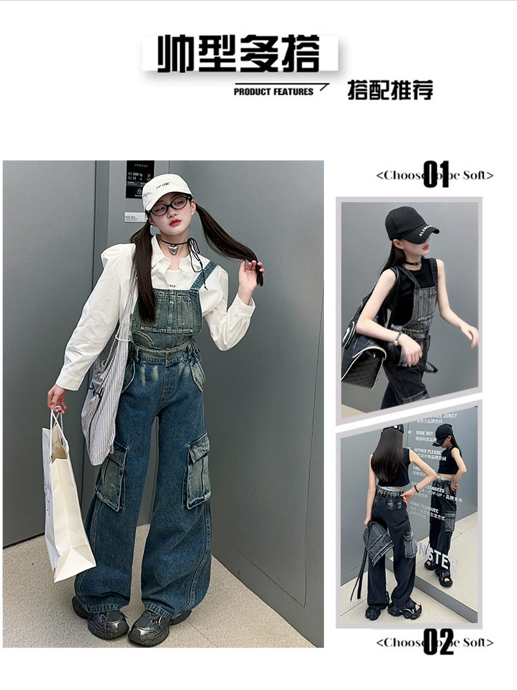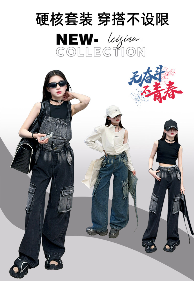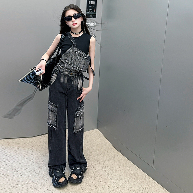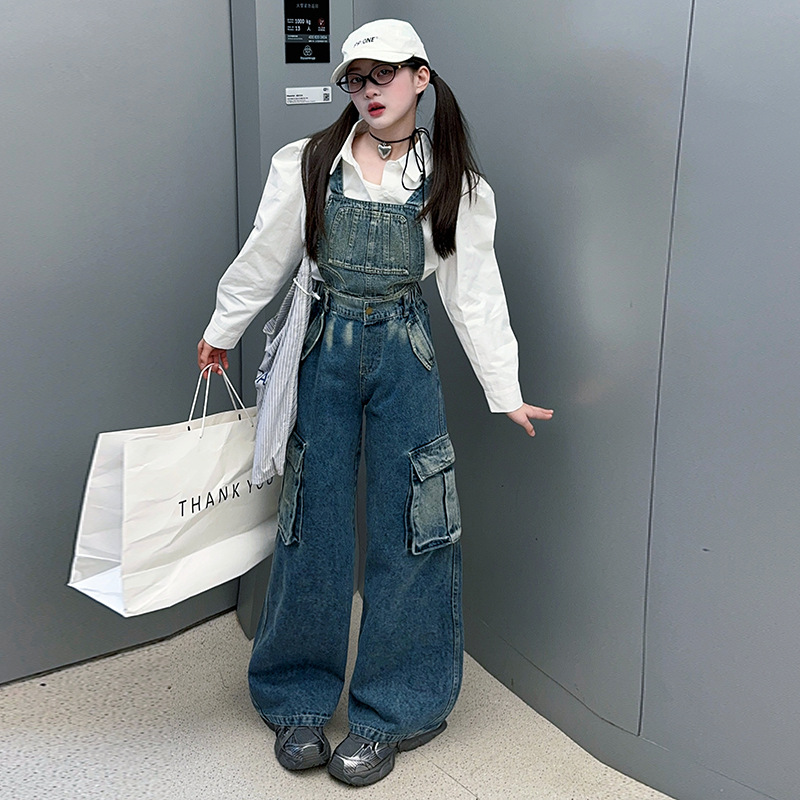 2025 년 봄 · 가을 새 한국식 디자인 센스 스트레이트 다리 바지 세트 소녀 투웨어 데님 스트랩