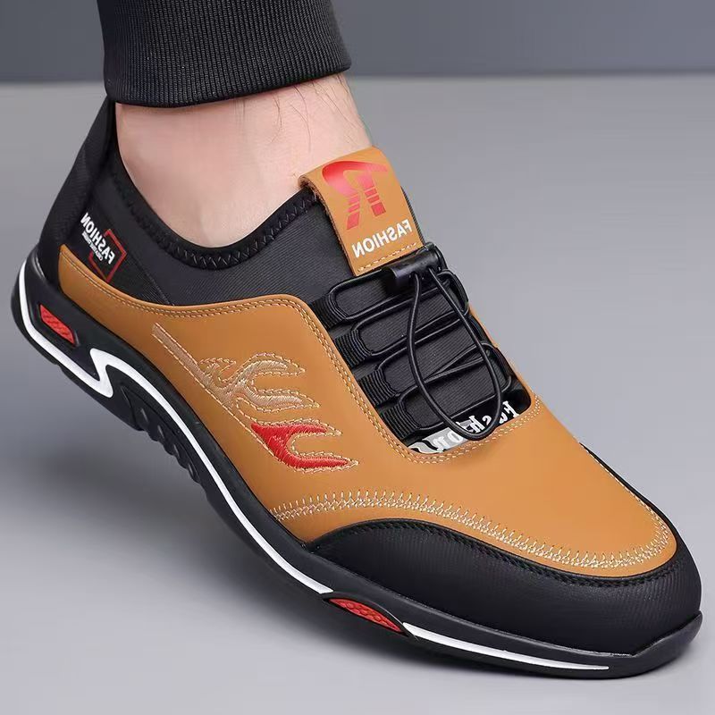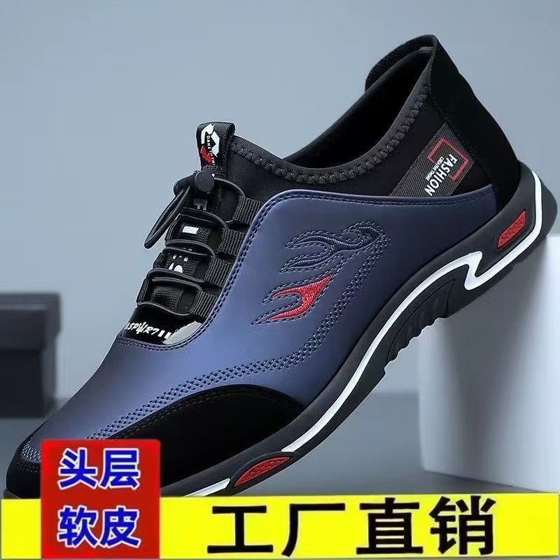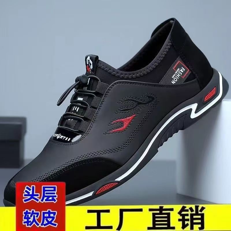 대외 무역 남성 신발 유행 한국 스타일 캐주얼 남성 가죽 신발 가볍고 편안한 간단한 부드러운 바닥 가죽 슬립-게으른 신발스토어 가기