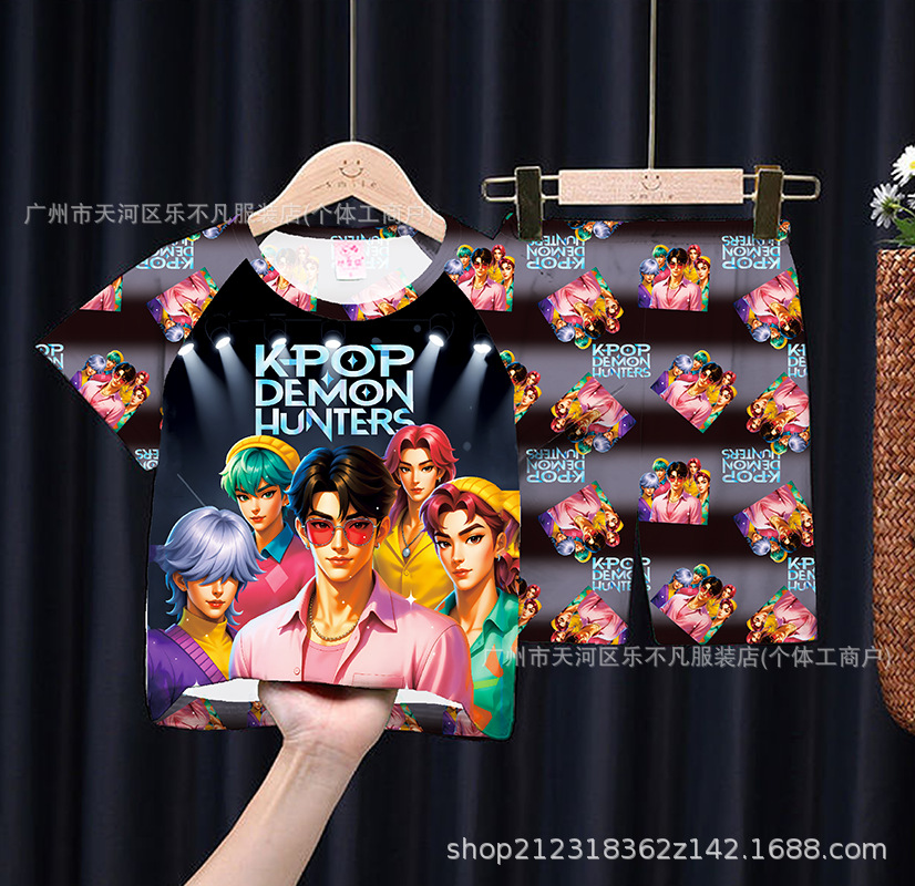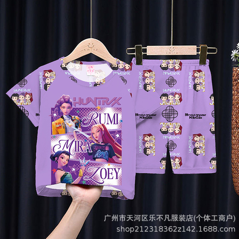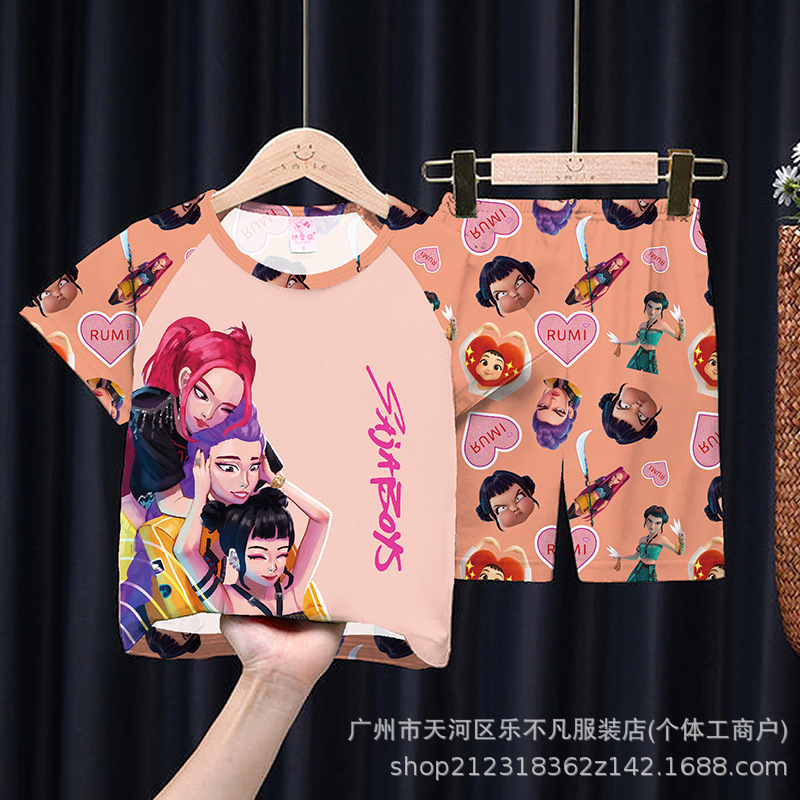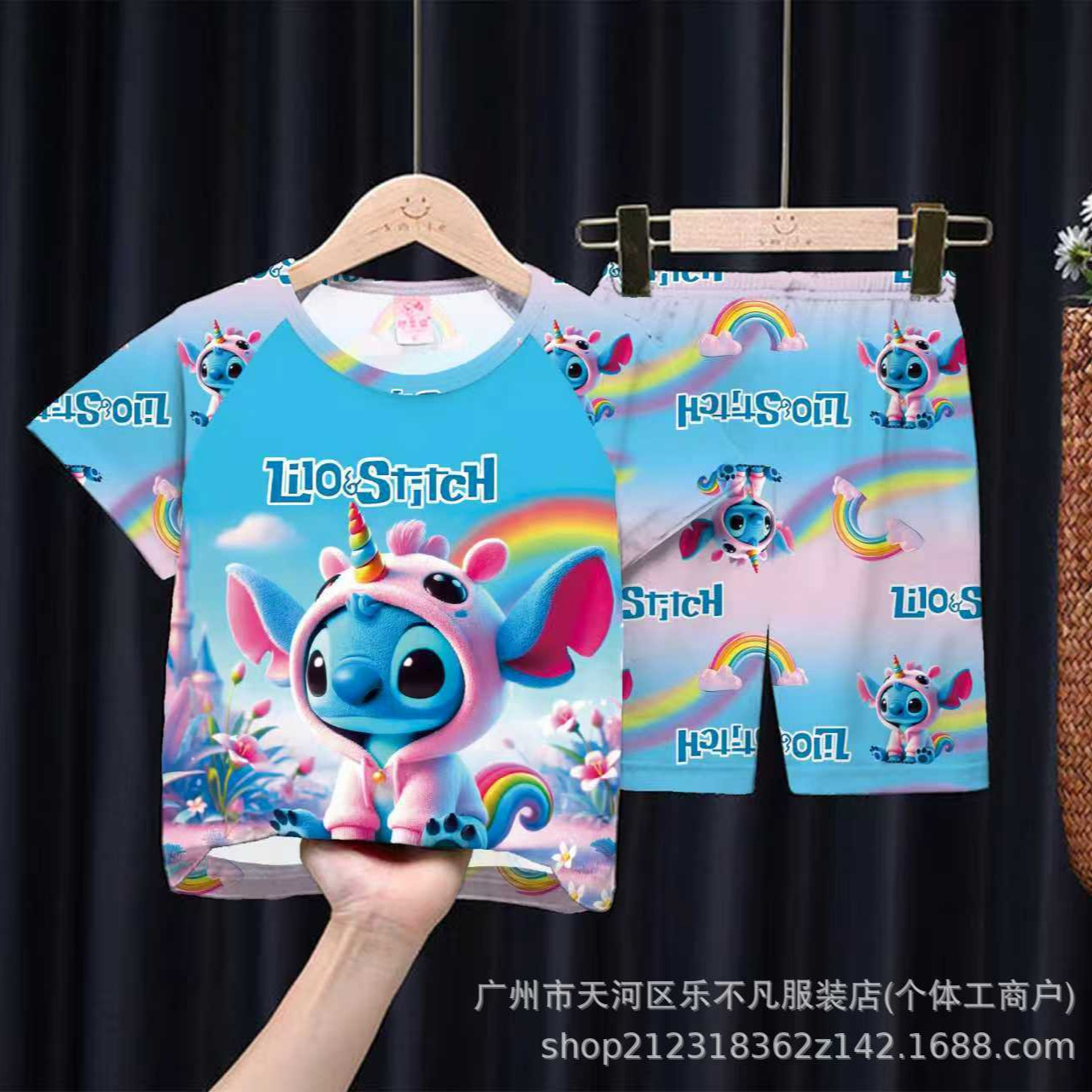 새로운 여름 어린이 잠옷 만화 소녀 반팔 반바지 얇은 소년 캐주얼 중 큰 아이 세트 홈 옷스토어 가기