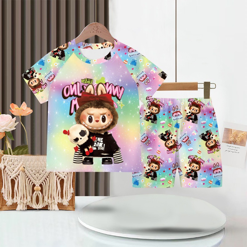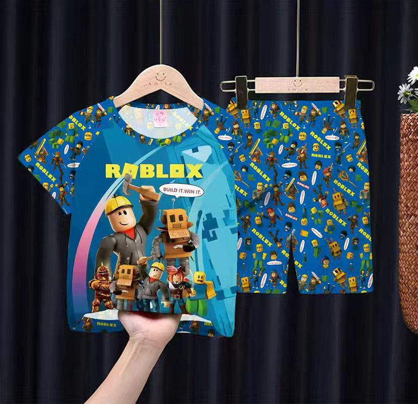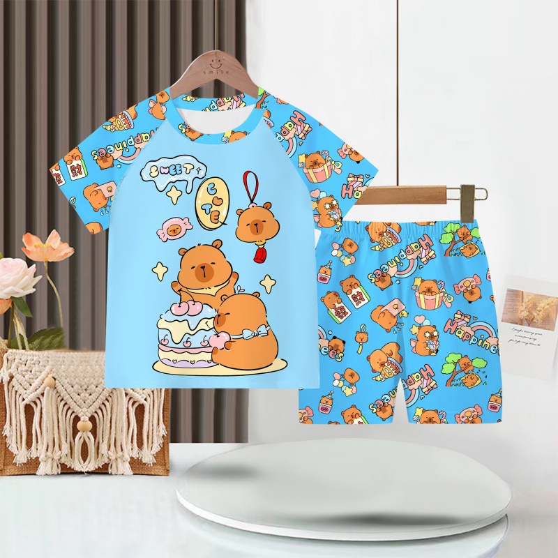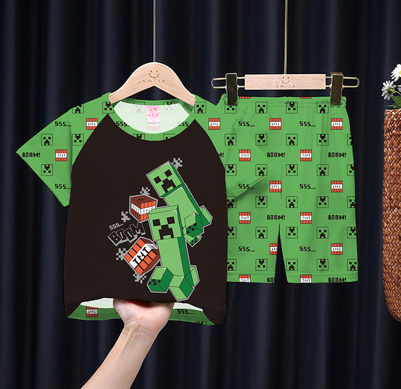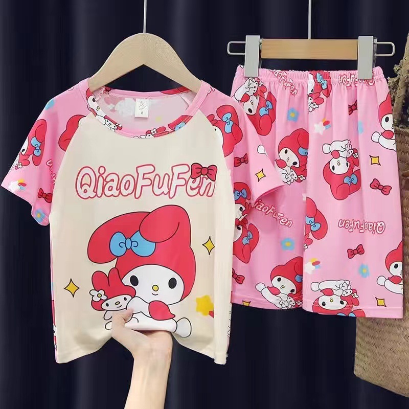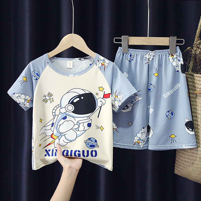 새로운 여름 어린이 잠옷 만화 소녀 반팔 반바지 얇은 소년 캐주얼 중 큰 아이 세트 홈 옷