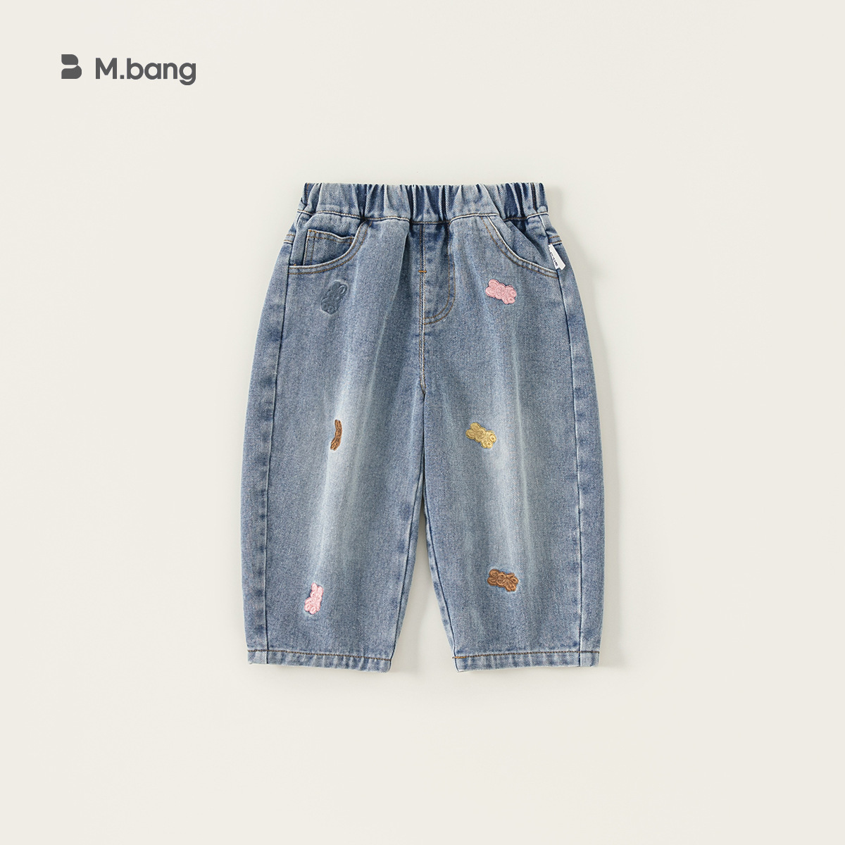 Youbao 아동 의류 소녀 느슨한 청바지 봄 새로운 어린 소녀 바지 어린이 귀여운 수 놓은 넓은 다리 바지