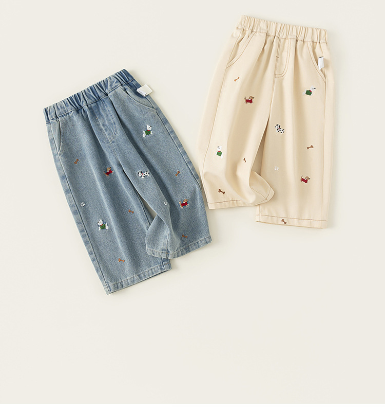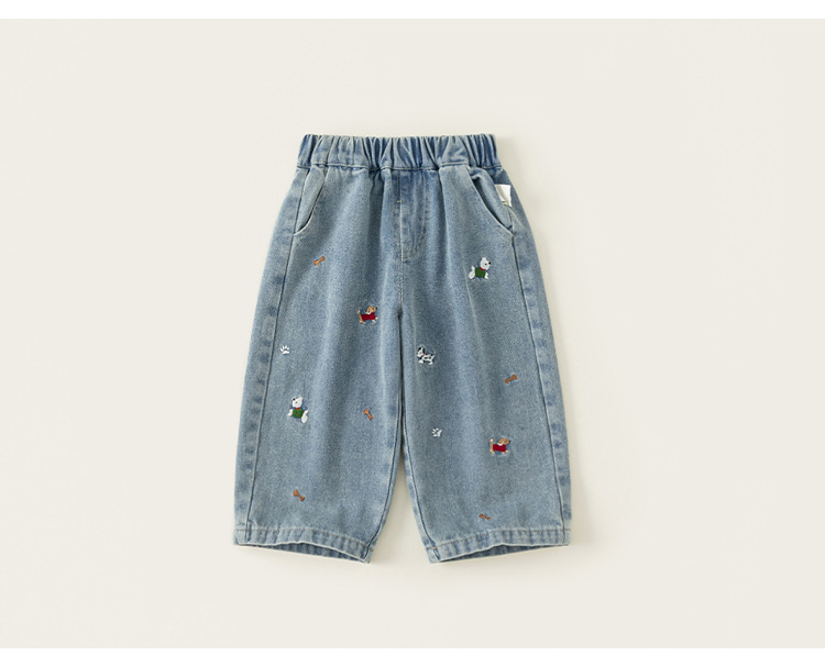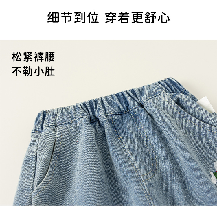 Youbao 아동 의류 소녀 느슨한 청바지 봄 새로운 어린 소녀 바지 어린이 귀여운 수 놓은 넓은 다리 바지스토어 가기