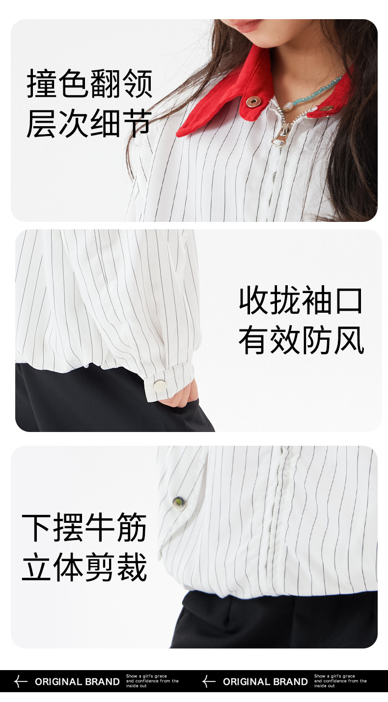 아동용 라펠 재킷 2025 가을 새로운 한국 스타일 루즈 캐주얼 흰색 줄무늬 야구 유니폼 소년 소녀용스토어 가기