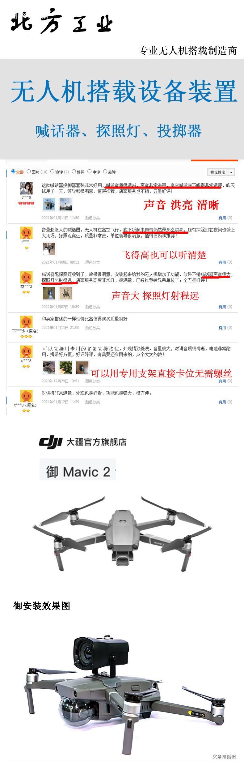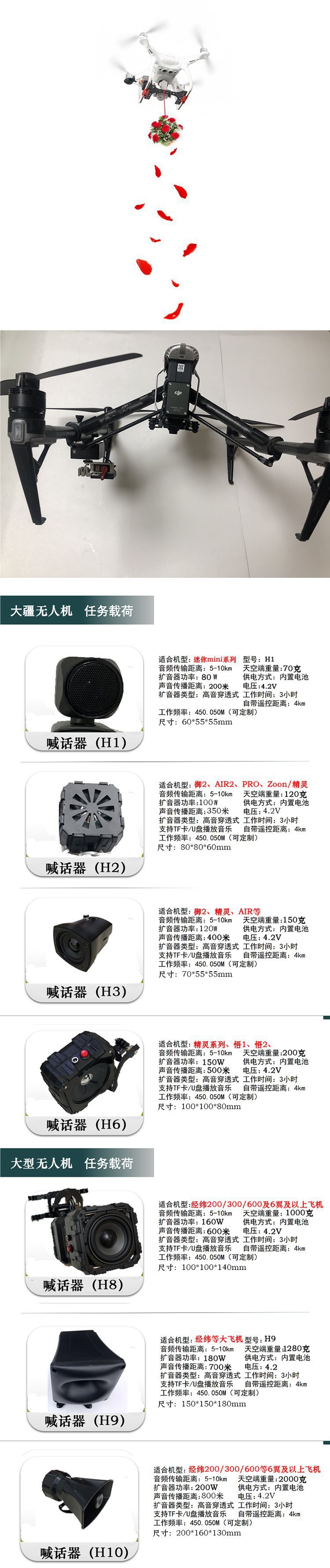 UAV 던지는 에어 드롭 던지는 사람 확성기 Dajiang Royal 3/AIR3/Royal 2 채널 유니버설